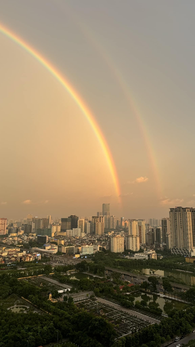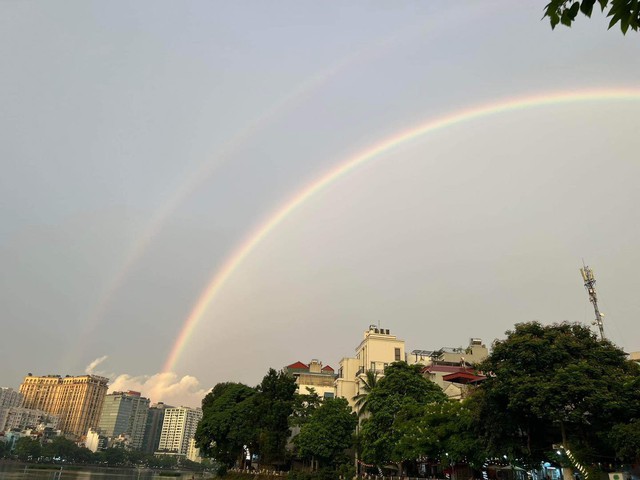 Chiều 22/7, trên bầu trời Hà Nội đã xuất hiện cầu vồng đôi lớn và đẹp. Nhiều người đã kịp chụp lại khoảnh khắc này và chia sẻ lên mạng xã hội.