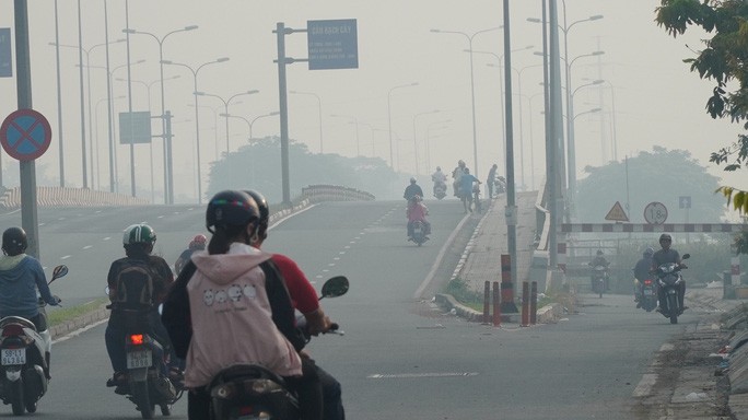 Đại lộ Võ Văn Kiệt, TP HCM bầu trời mù mịt trở lại, nhiều người đi đường liên tục dụi mắt do bụi dày đặc.