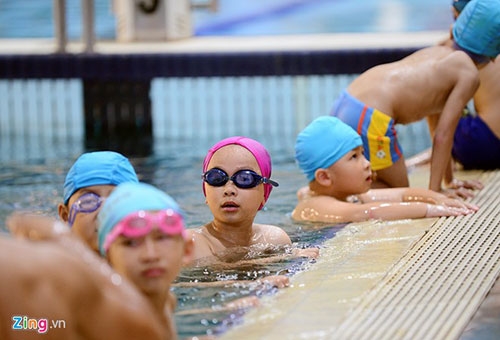 Ông Trần Việt Dũng, phụ trách Cung thể thao dưới nước Mỹ Đình cho biết, chỉ trong 6 ngày đến học, mọi người sẽ bơi được những bài cơ bản như bơi ếch, ngửa. |