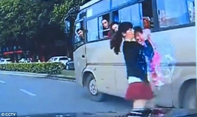 Đúng lúc này chiếc xe có camera vừa đi tới và phải vội vàng phanh gấp, đoạn clip cũng cho thấy người mẹ đã vội vàng xuống xe và cứu cô con gái đang đẫm nước mắt nằm trên đường.