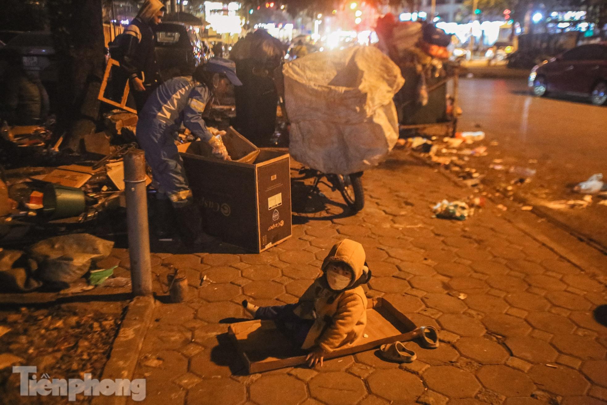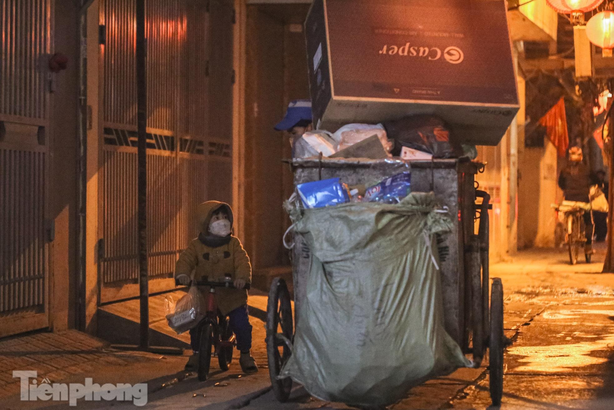 Xuất hiện trong các con ngõ, trên vỉa hè đường Kim Mã (quận Ba Đình, Hà Nội), hình ảnh cậu bé 2 tuổi lẽo đẽo theo chân mẹ - một nhân viên lao công đi gom rác giữa đêm đông giá rét khiến nhiều người không khỏi xót xa.