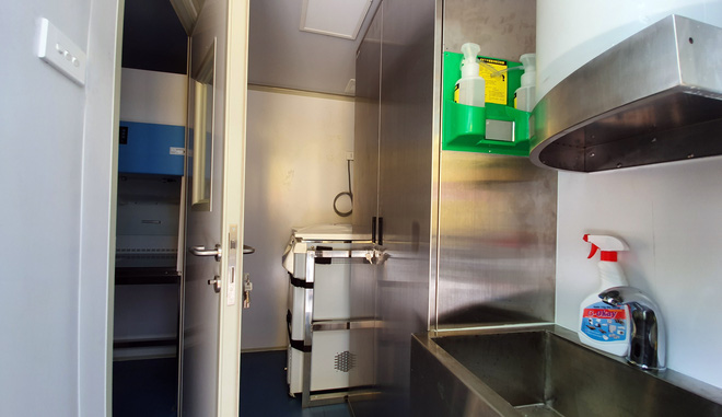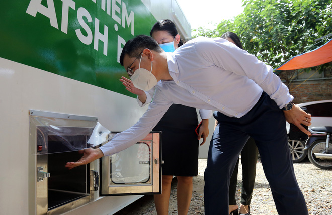 Chiếc xe container đã được gấp rút nghiên cứu, sản xuất để lưu động xét nghiệm Covid. Hai "phòng xét nghiệm" di động vừa chính thức lên đường "chi viện" TP HCM, Bình Dương.