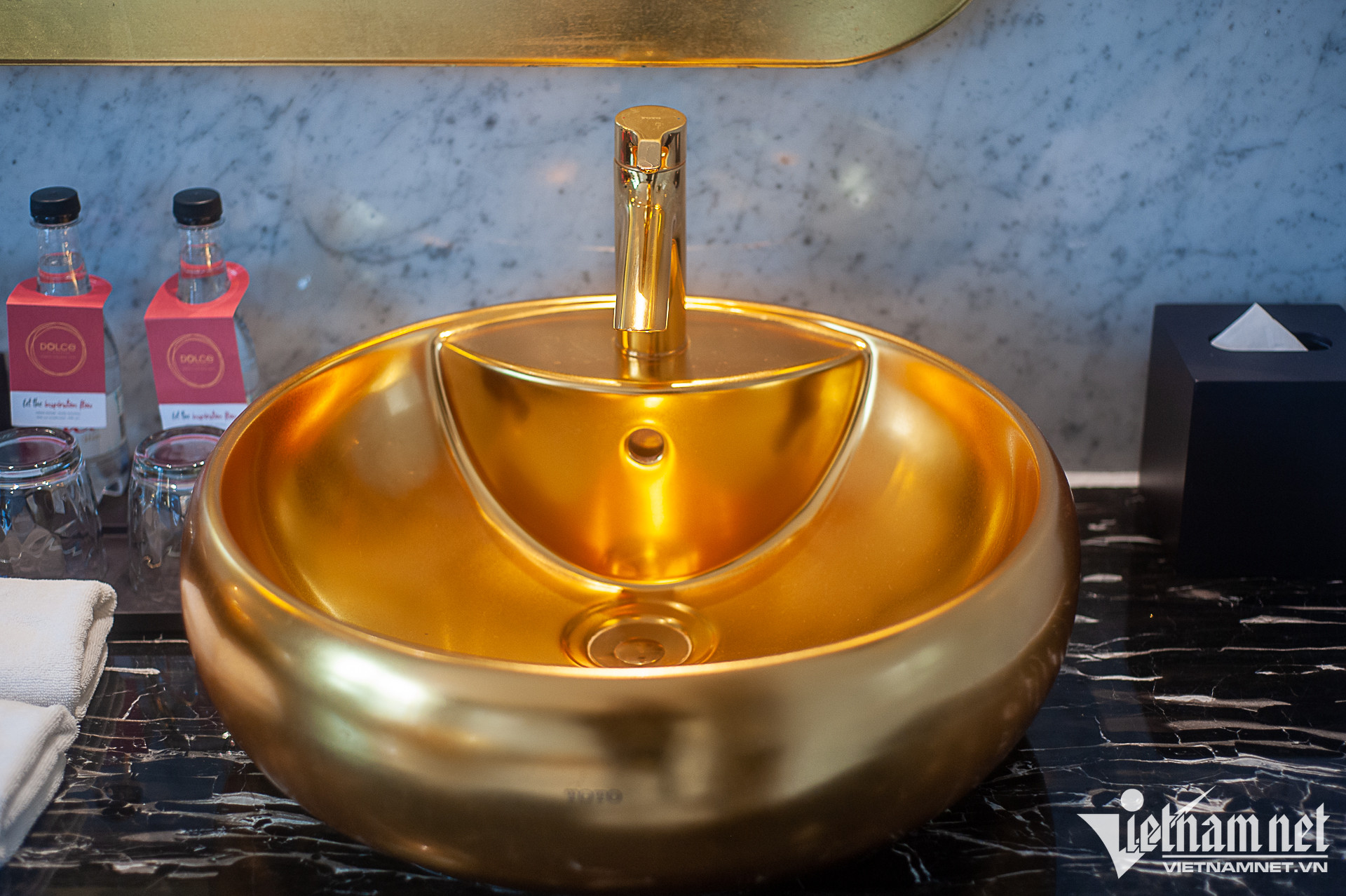 Khách sạn được dát vàng từ khu vực tắm tráng, bể bơi đến các vật dụng chi tiết nhỏ như vòi hoa sen, bồn cầu, bàn ăn, dao dĩa vừa được đại gia Đường "bia" rao bán giá 250 triệu USD.