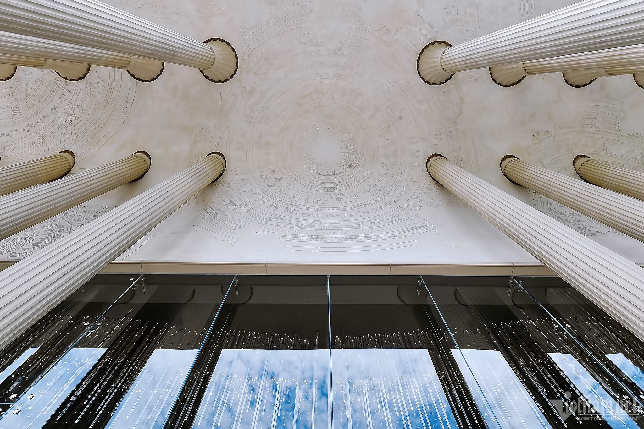 Tính hiện đại của công trình được thể hiện với hình ảnh hệ kính và các chi tiết mái vòm bao bọc công trình. Mái sảnh sử dụng các chi tiết phù điêu, kể về lịch sử dân tộc.