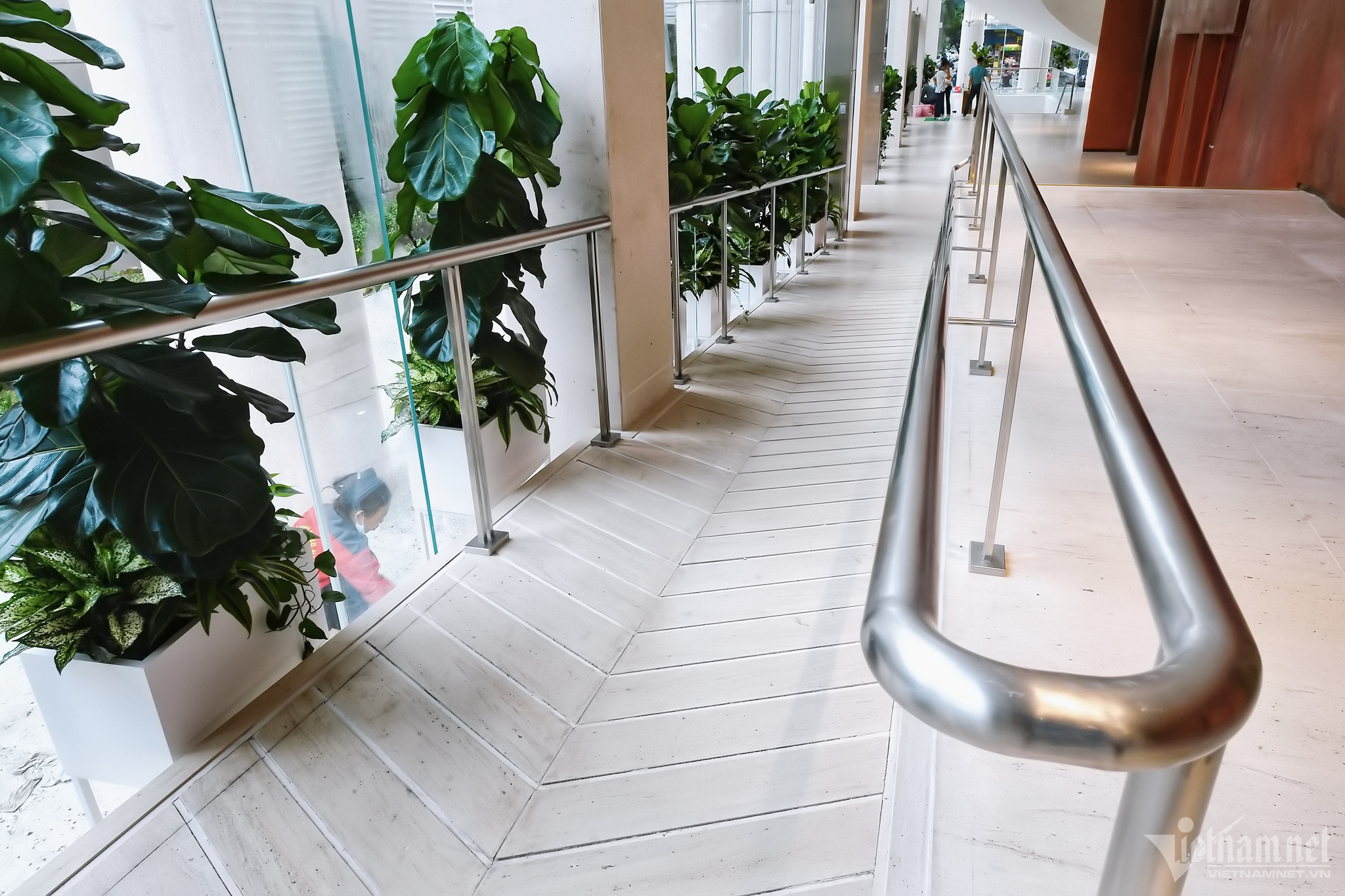 Tại lối vào sân khấu ở hai cánh và cả phía ngoài cổng đều có làn xe lăn dành riêng cho người khuyết tật.