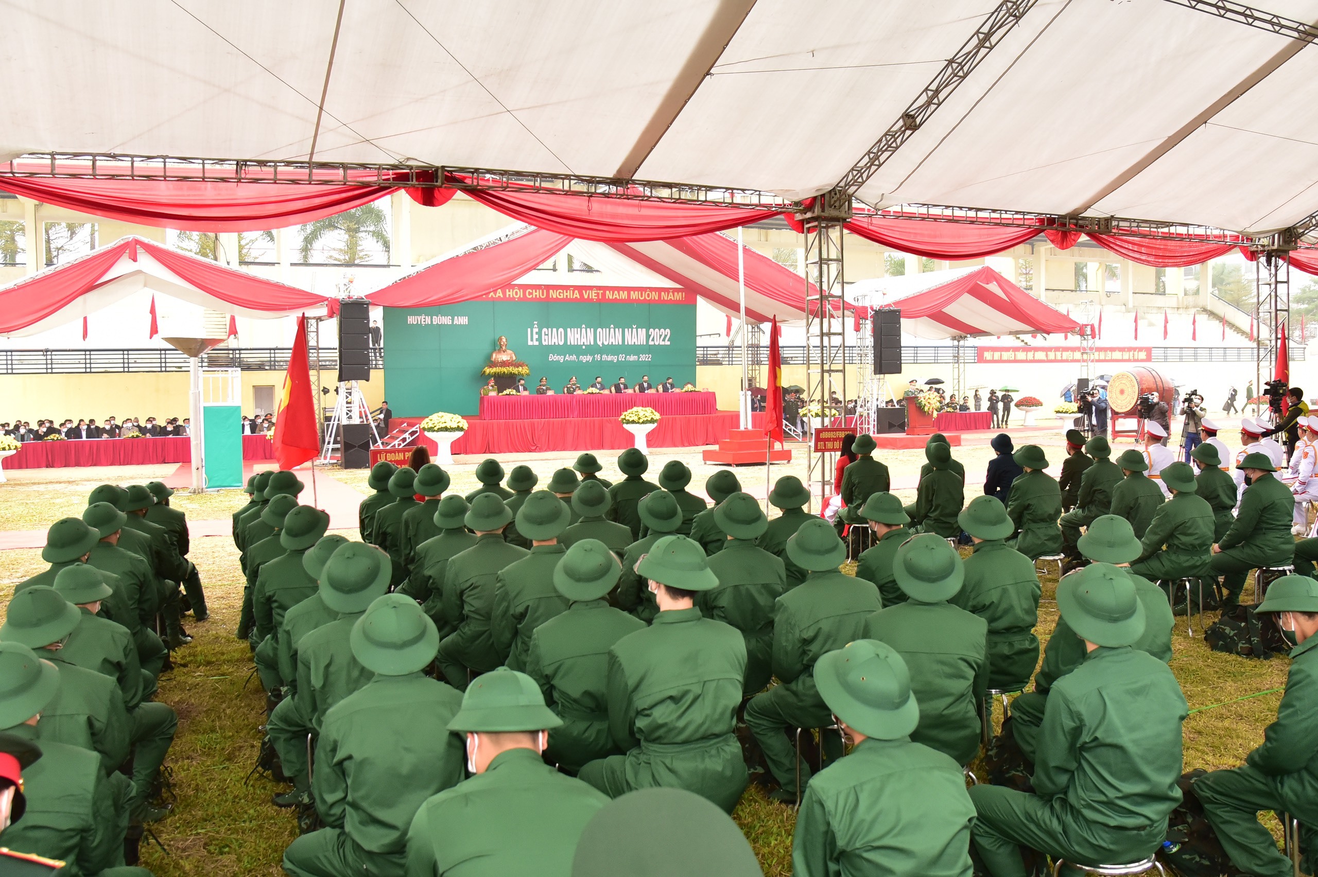 30 quận, huyện, thị xã TP Hà Nội sáng nay (16/2) đồng loạt tổ chức lễ giao, nhận công dân nhập ngũ năm 2022.