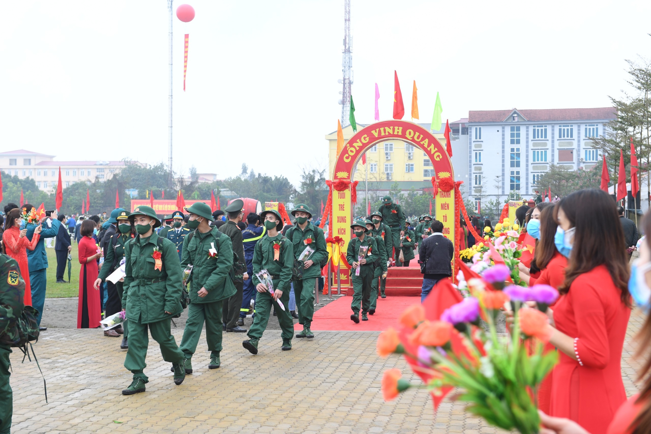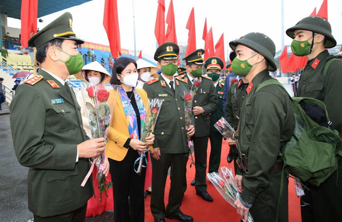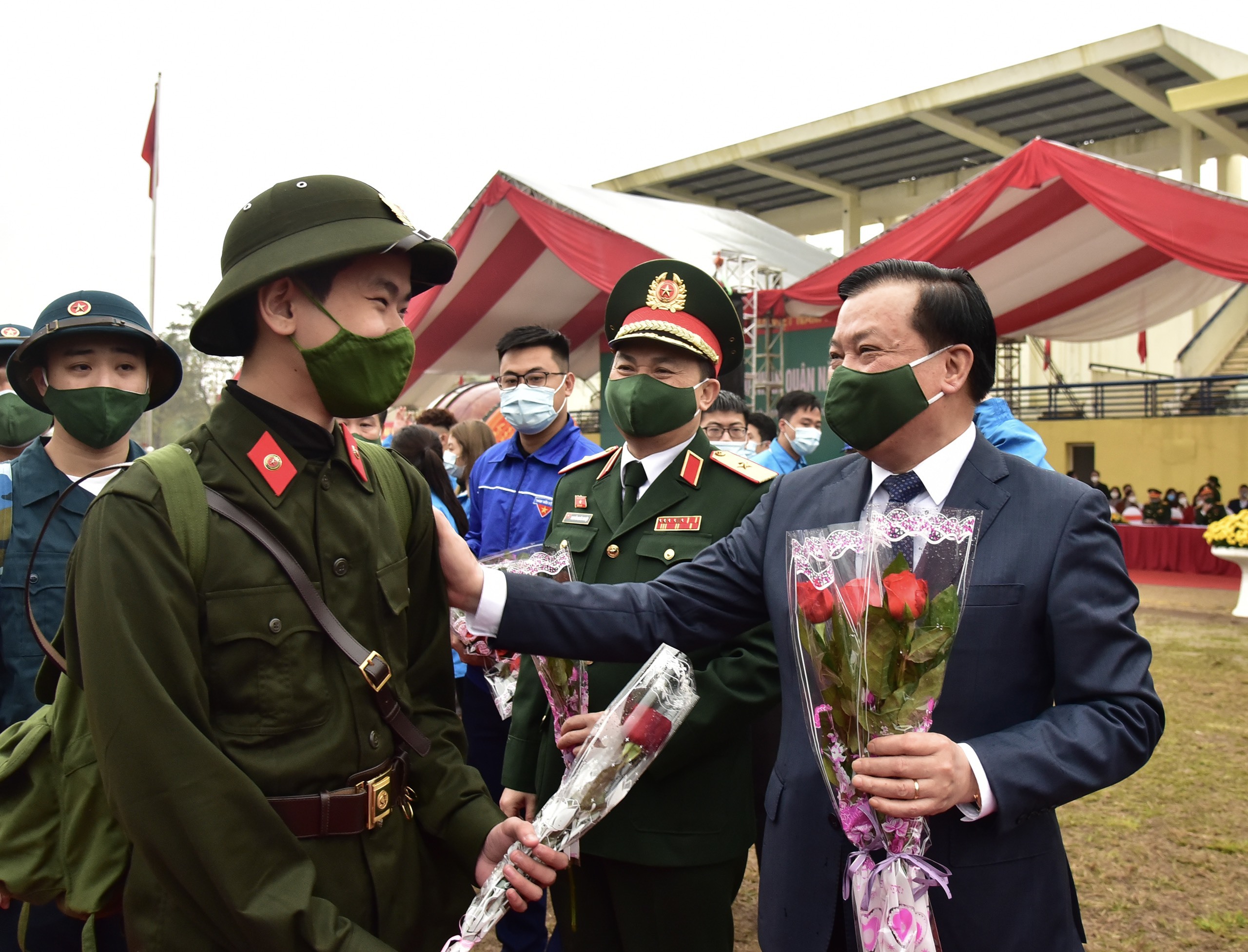 Tặng hoa, tiễn tân binh, lãnh đạo TP đề nghị mỗi tân binh phấn đấu xứng đáng là những người con của thủ đô Hà Nội anh hùng, đóng góp xây dựng Quân đội nhân dân Việt Nam và Công an nhân dân Việt Nam anh hùng ngày càng vững mạnh toàn diện; bảo vệ Tổ quốc Việt Nam xã hội chủ nghĩa, giữ gìn môi trường hòa bình để quê hương và đất nước không ngừng phát triển, đi lên.