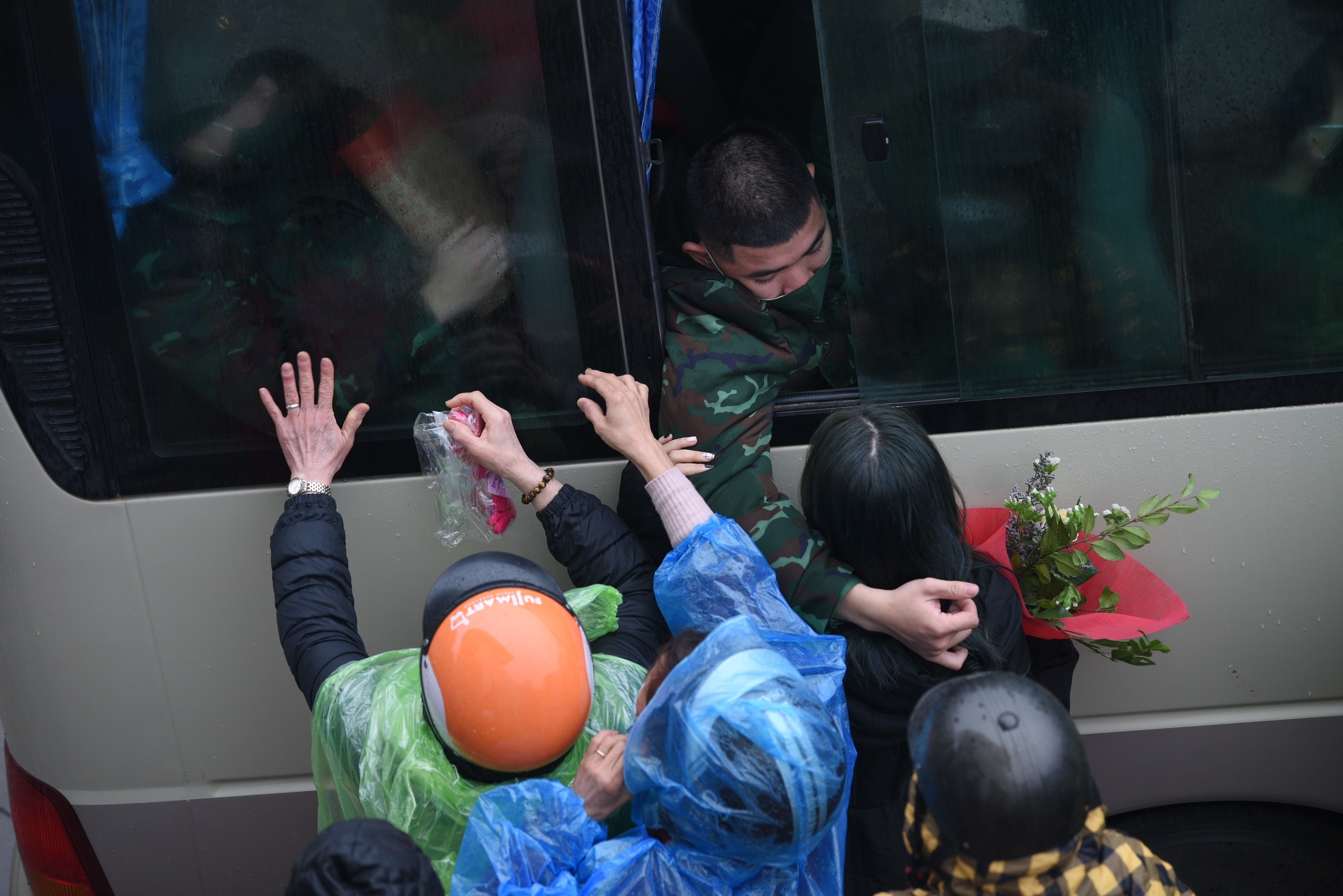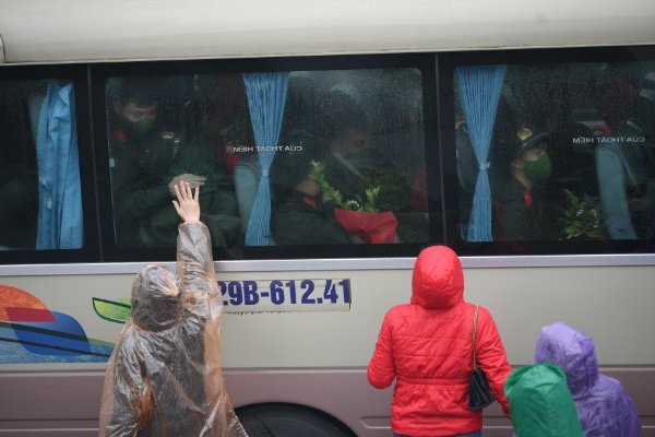 Hôm nay thời tiết Hà Nội mưa và khá rét, từ sáng sớm tại các địa điểm tiễn quân đã rộn ràng không khí của ngày hội giao nhận quân.