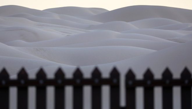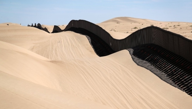 | Đoạn hàng rào cao 4,5 m chạy qua đồi cát Algodones ở California thường được gọi là "hàng rào bay" bởi chúng chuyển động cùng cát khi có gió thổi. Theo các cơ quan kiểm soát biên giới, người nhập cư và những kẻ buôn ma túy luôn tìm cách vượt qua đây mỗi ngày. |
