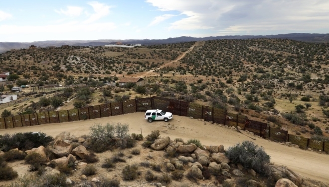 | Chiếc xe thuộc Cơ quan Tuần tra Biên giới Mỹ hồi năm ngoái đỗ canh gác bên cạnh hàng rào biên giới Mỹ - Mexico tại Jacamba Hot Springs, California. Theo một báo cáo từ cơ quan nghiên cứu thuộc Quốc hội Mỹ, những đoạn hàng rào đầu tiên được dựng lên vào năm 1990 ở San Diego. |