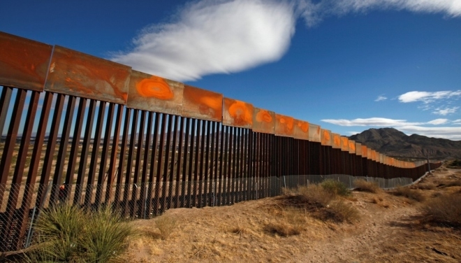 | Hàng rào biên giới ngăn cách Mỹ và Mexico ở California. Hạn chế nhập cư là một vấn đề chính trong chiến dịch tranh cử của Trump. Ông muốn xây một bức tường dọc theo 3.200 km biên giới chung giữa Mỹ và Mexico. Trump hồi năm ngoái tuyên bố bức tường sẽ dài khoảng 1.600 km do địa hình biên giới. |