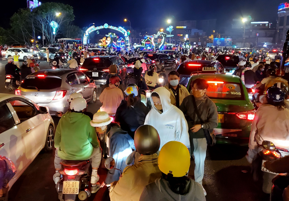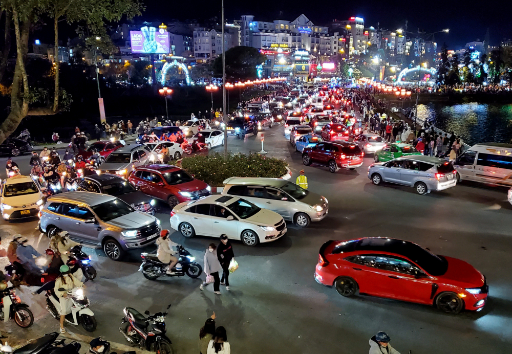 Hàng chục ngàn người đổ về các địa điểm du lịch nổi tiếng của Đà Lạt vui chơi khiến khu vực trung tâm ùn tắc.