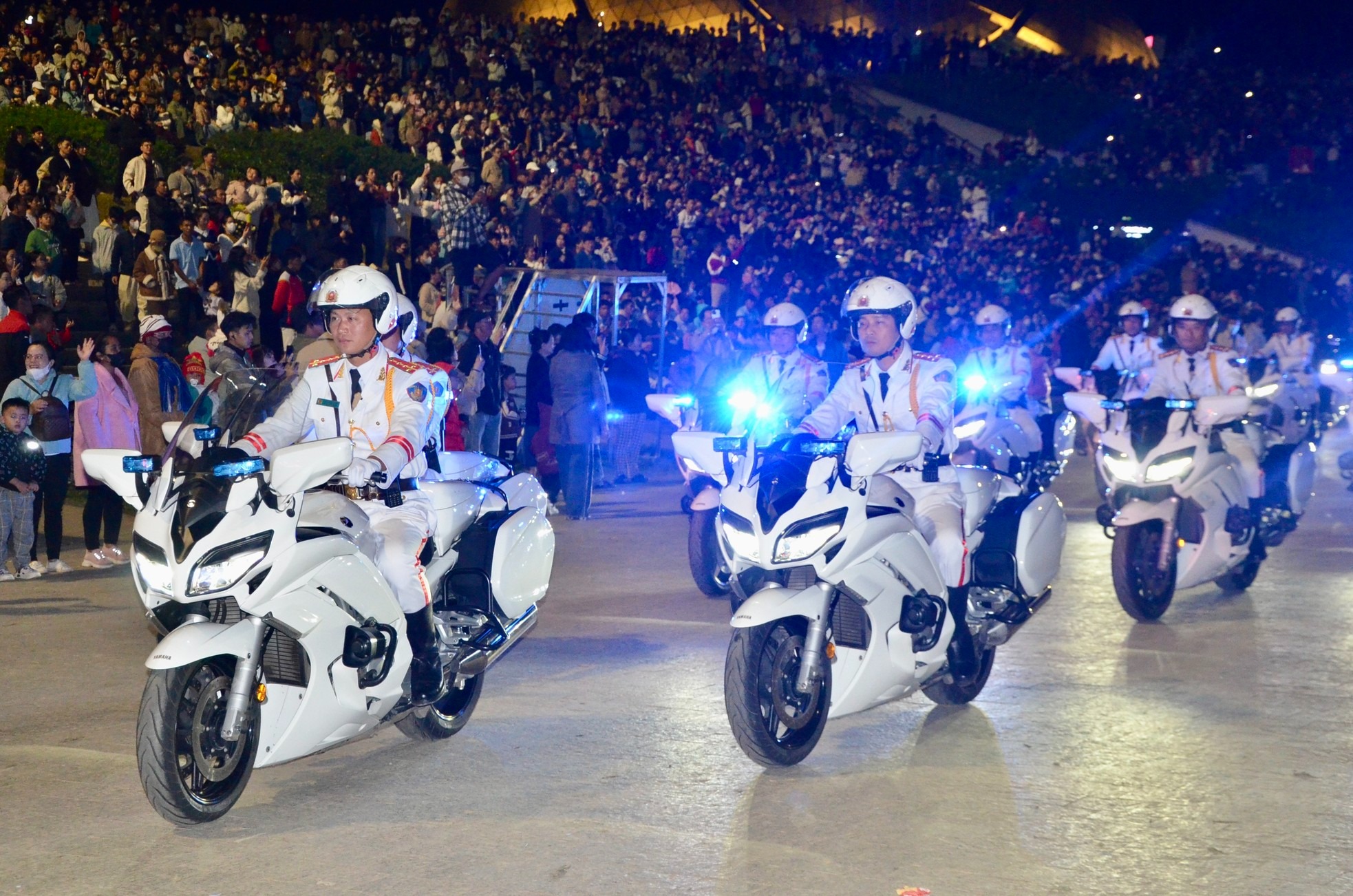 Tối 12/10, tại TP Đà Lạt (tỉnh Lâm Đồng), đã diễn ra chương trình diễu hành của đoàn mô tô, đoàn Cảnh sát Cơ động Kỵ binh và đoàn Nghi lễ Công an Nhân dân (CAND) thuộc Bộ Công an.