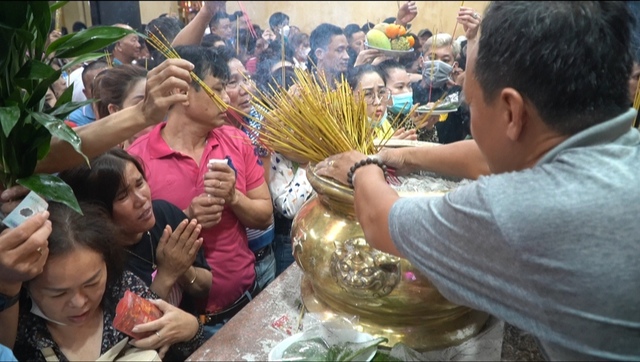 Càng về khuya lượng người đổ về khu vực chánh điện ngày một đông, nhiều người phải rất vất vả chen lấn, giành giật nhau để bốc tro trong lư hương.