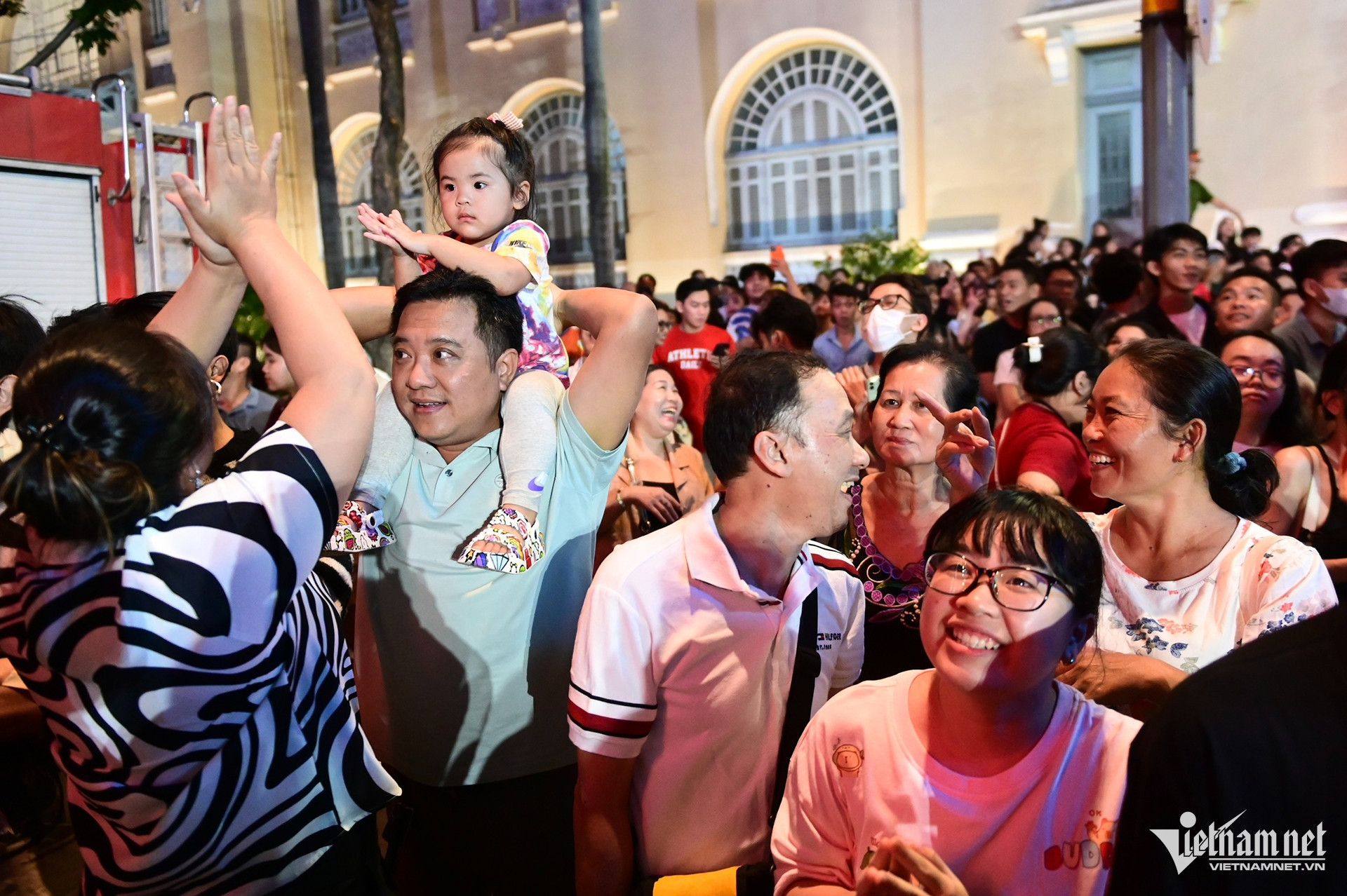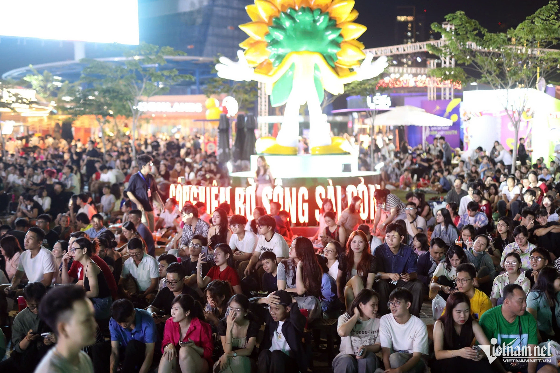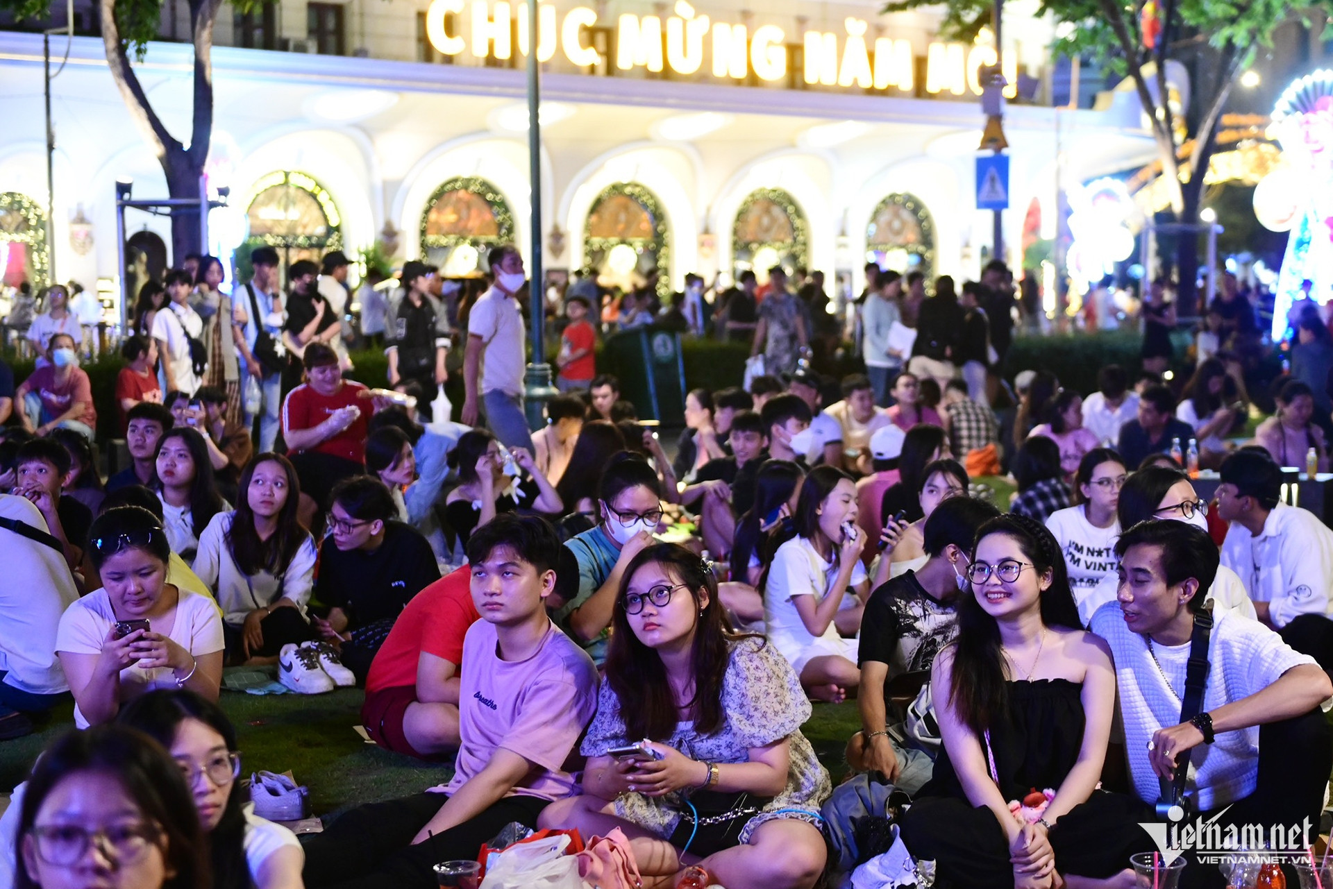 Dù còn 5 tiếng mới tới thời điểm chuyển giao giữa năm cũ và năm mới, hàng nghìn người đã có mặt tại trung tâm TPHCM ngay từ 19h, xí chỗ, chờ xem pháo hoa.