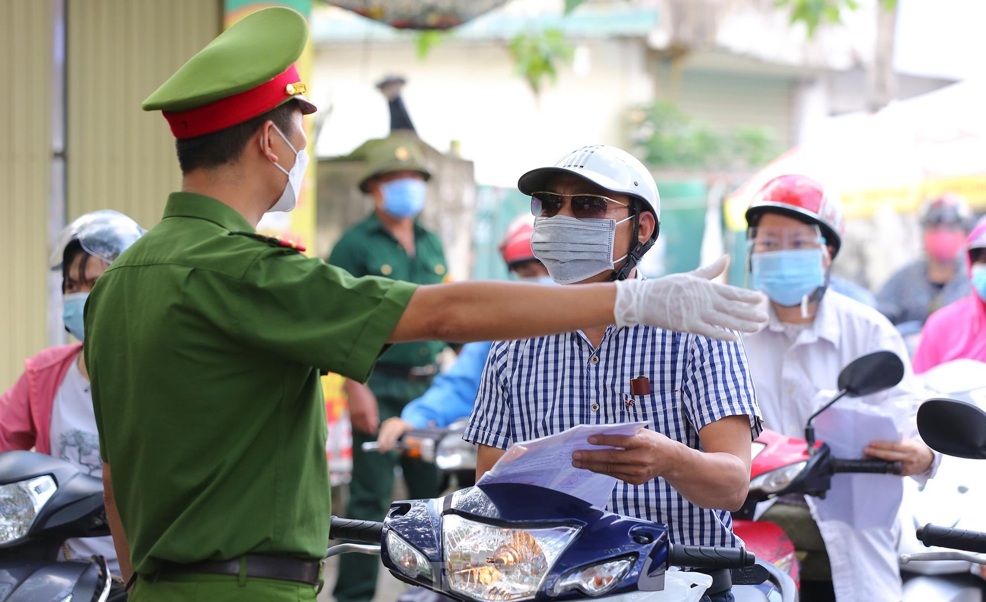 Do quá đông người ra đường nên UBND huyện Thanh Trì (Hà Nội) vừa yêu cầu người dân khi ra đường cần xuất trình thêm lịch trực, lịch làm việc, văn bản phân công nhiệm vụ của cơ quan, đơn vị. Sáng nay (31/8), nhiều đoạn đường bị ùn ứ hàng chục mét khi lực lượng chức năng kiểm tra 'lý do ra đường' cùng ngươi dân.