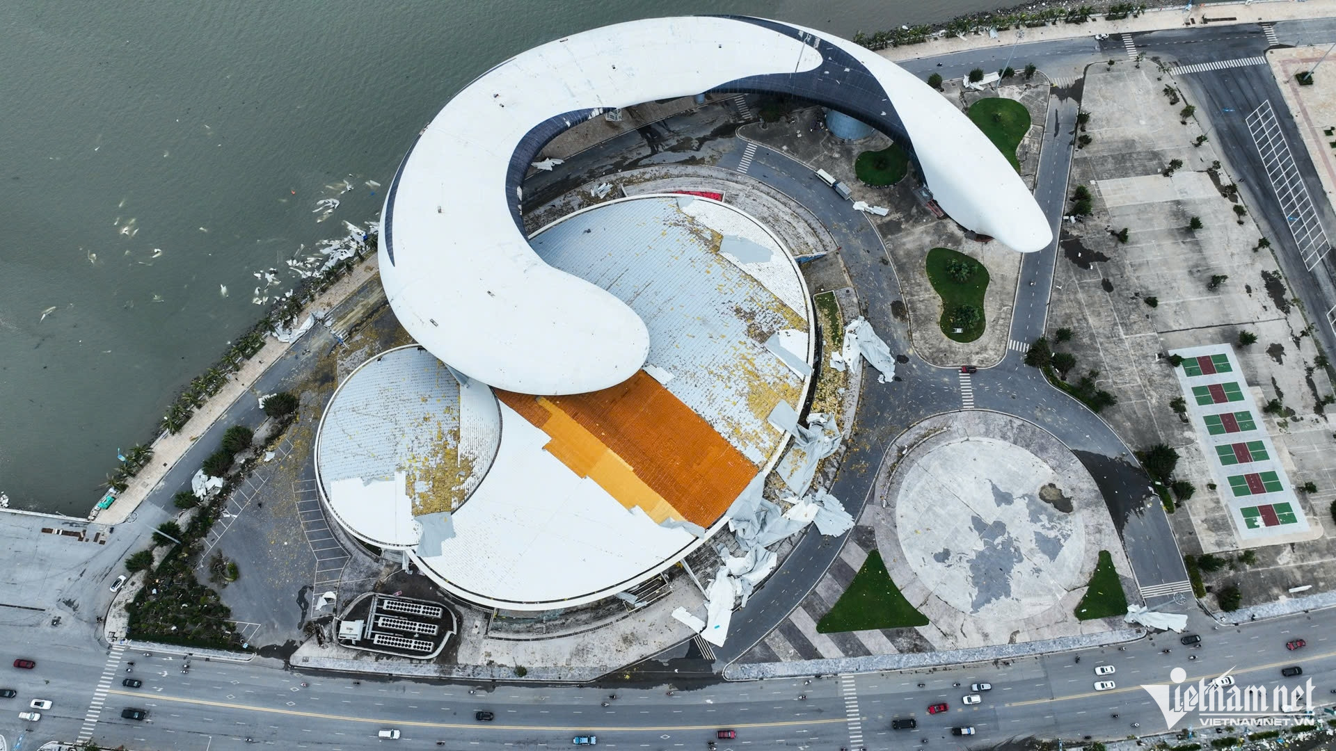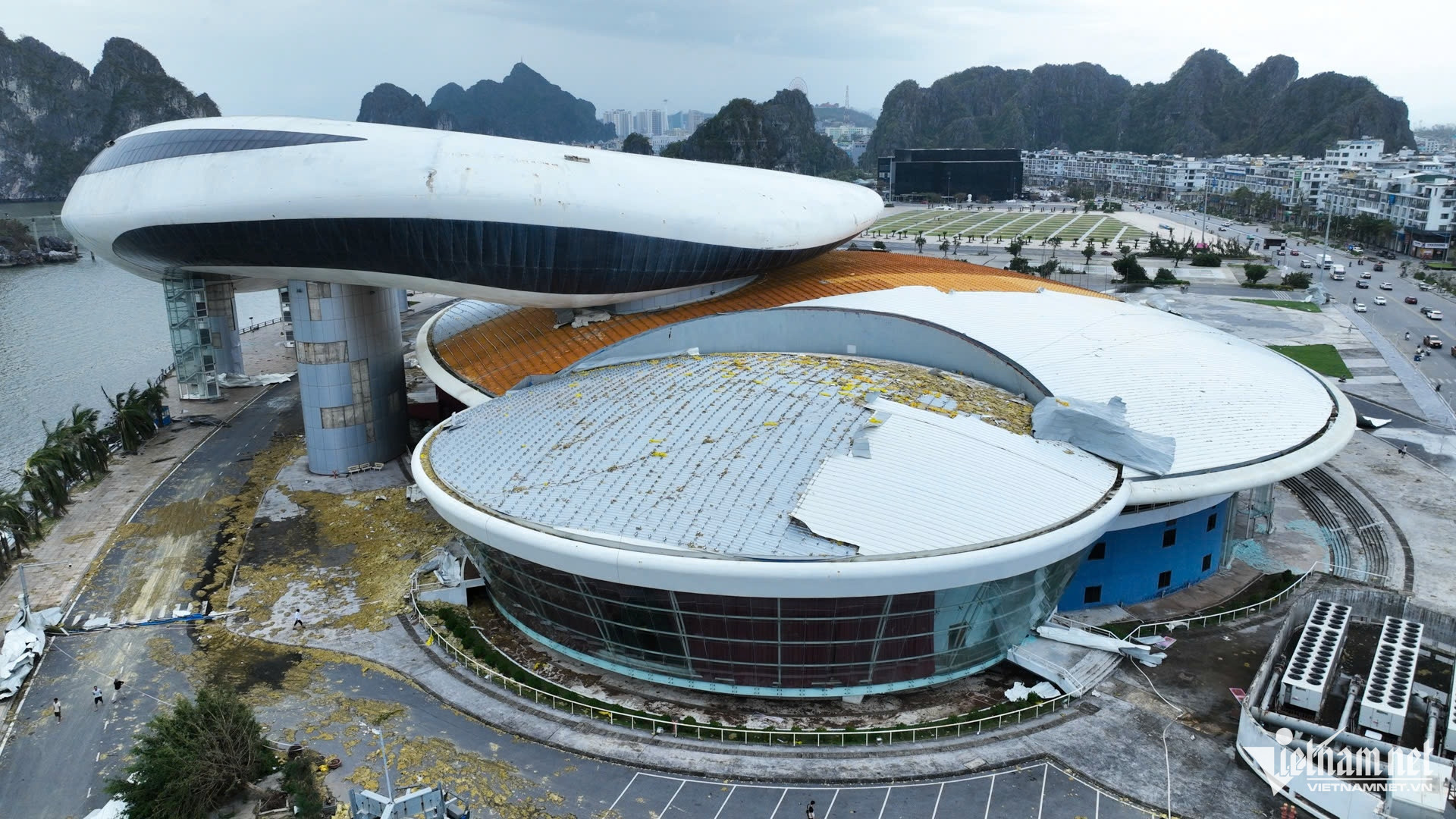 Cung cá heo, Bảo tàng Quảng Ninh là những công trình từng được đầu tư nghìn tỷ, đang chịu cảnh hư hại nặng nề sau khi bão số 3 đổ bộ vào Hạ Long.