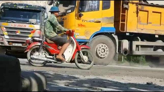 Đường mòn Hồ Chí Minh đoạn qua thôn Quán Trắng, xã Liên Sơn (huyện Lương Sơn, Hòa Bình) luôn trong tình trạng mù mịt khói bụi, bất kể nắng hay mưa. Mỗi ngày, nhiều đoàn xe tải chở đá rầm rập chạy qua, mặt đường bị băm nát, lỗ chỗ ổ voi. Hơn 10 năm qua, người dân nhiều lần kiến nghị nhưng tình trạng này không thuyên giảm.