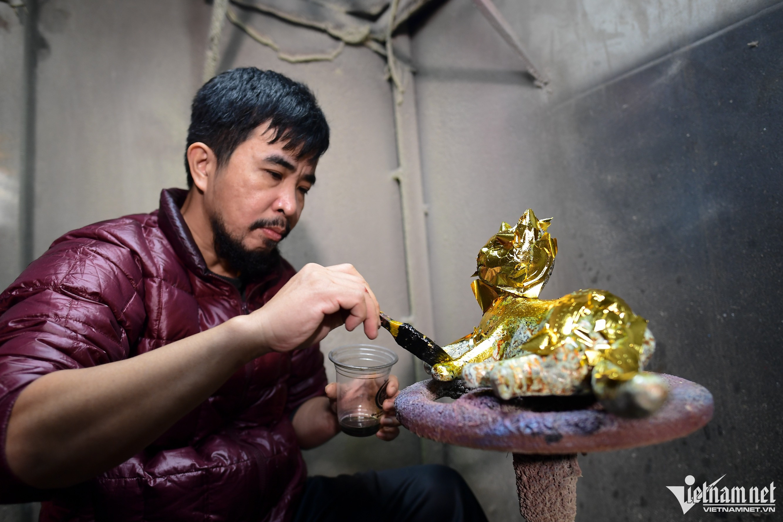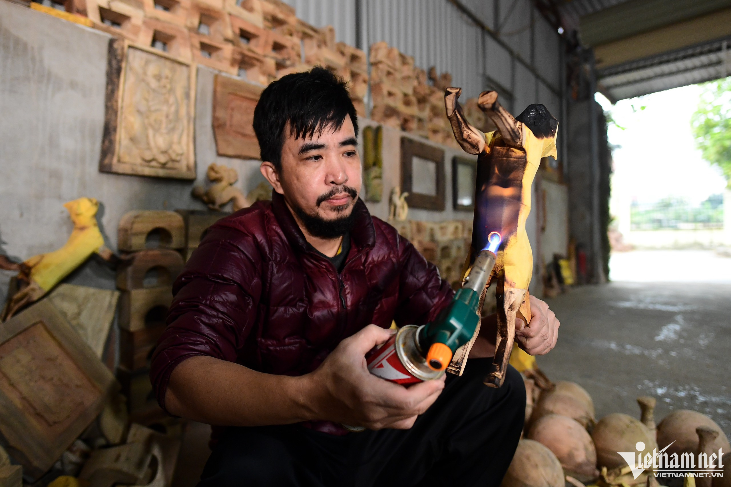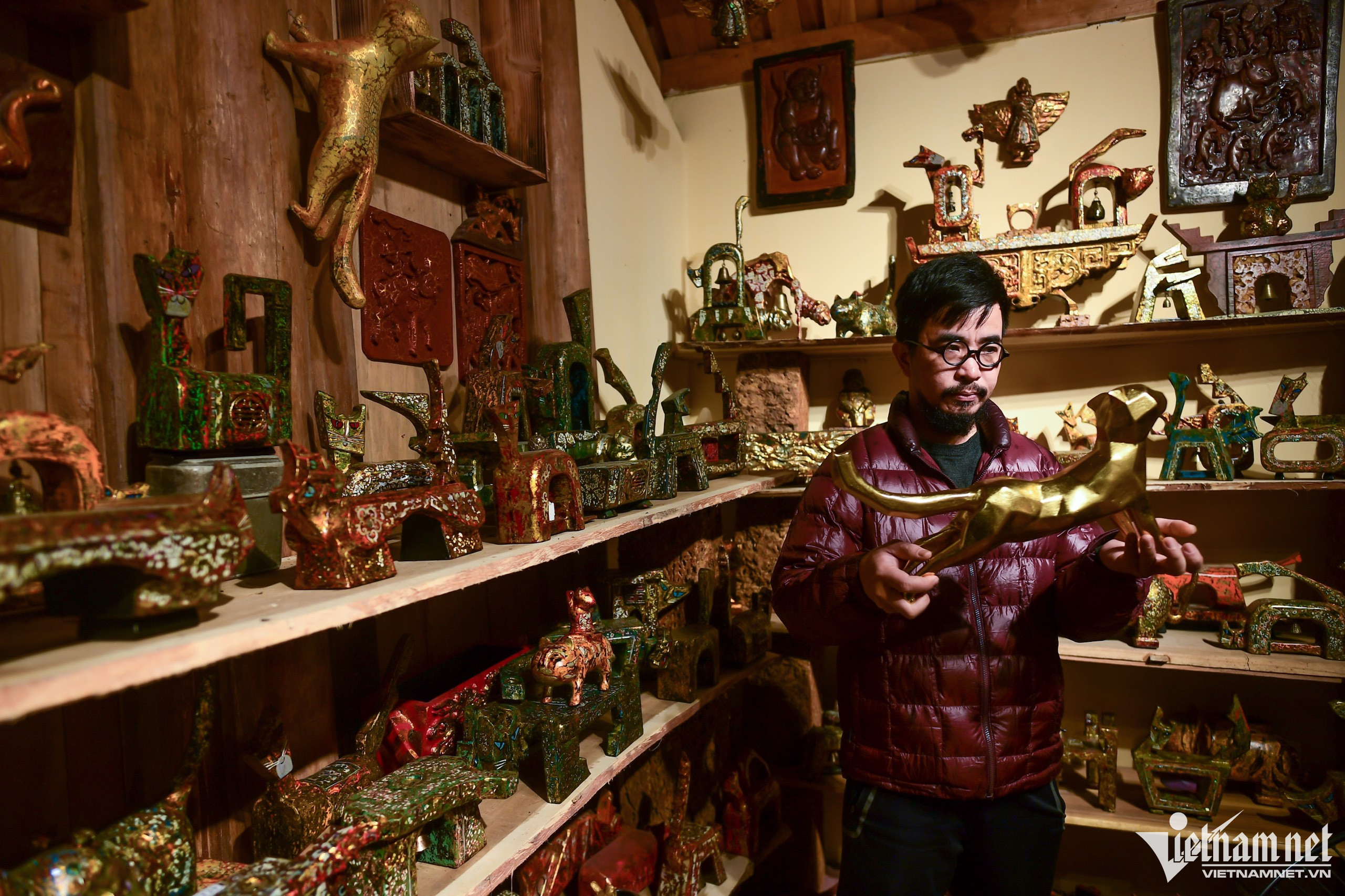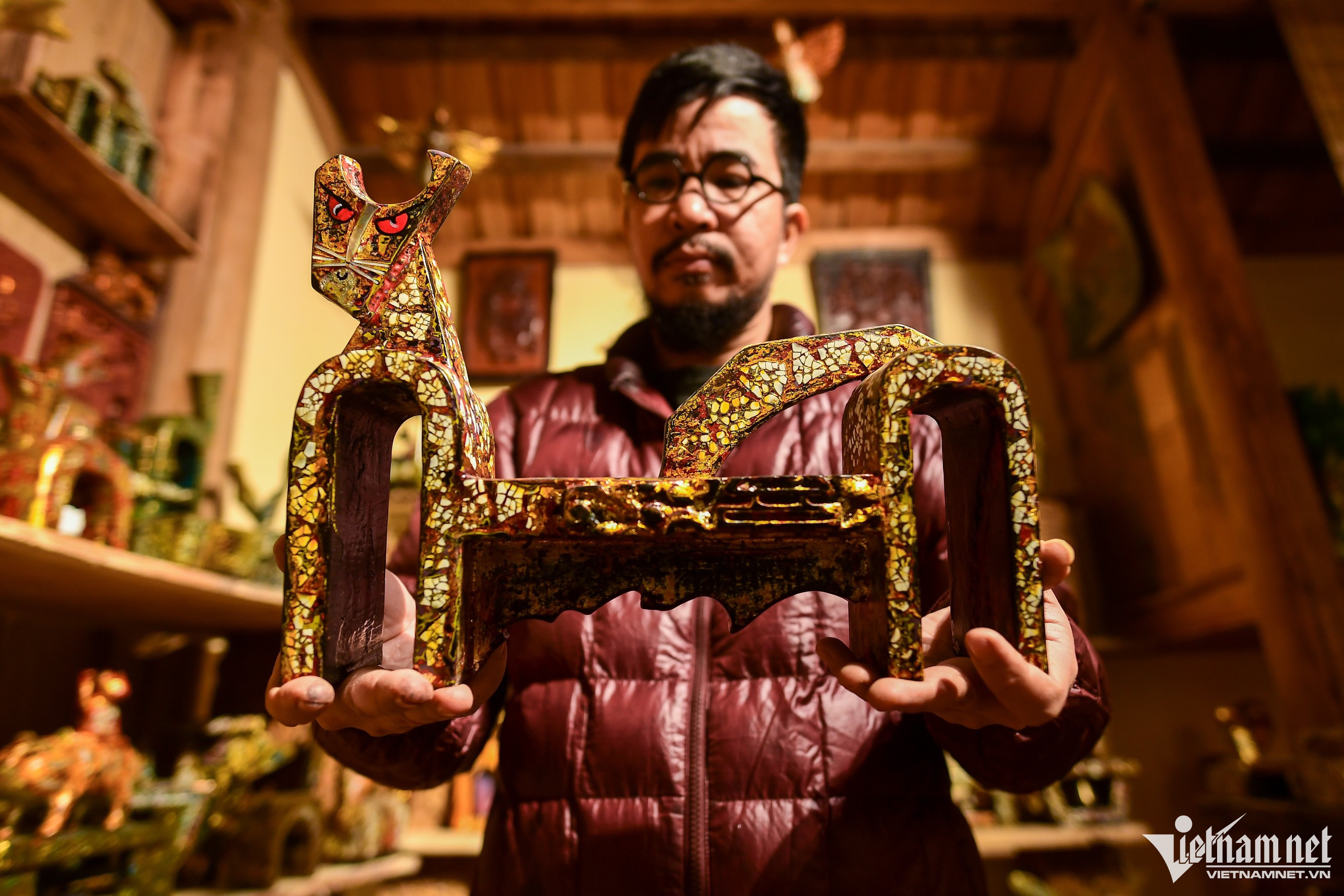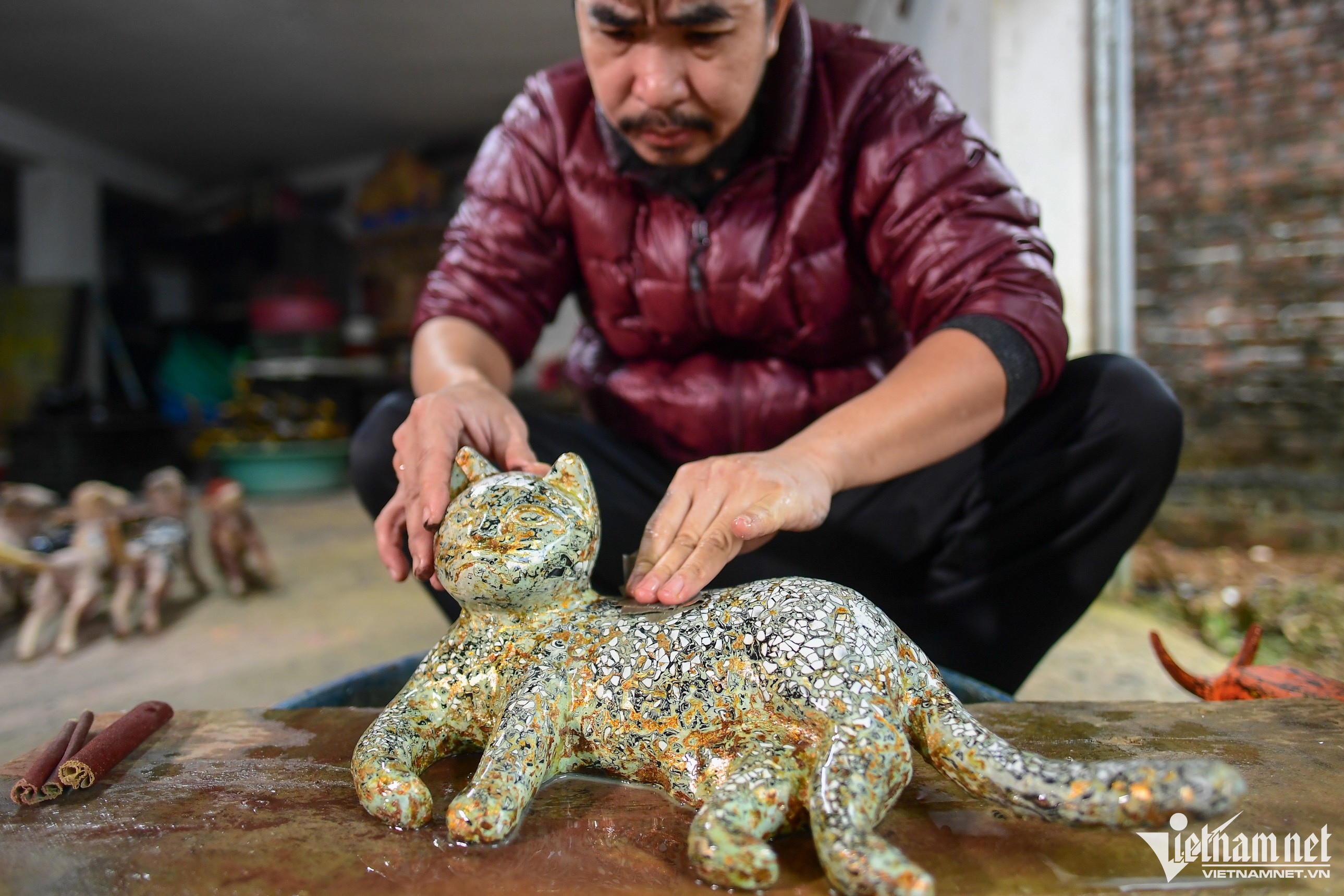 Anh Nguyễn Tấn Phát, một nghệ nhân ở Hà Nội, đang hoàn thiện 2023 tác phẩm độc đáo để phục vụ khách đón Tết Nguyên đán. Nổi bật trong số đó là bộ bàn ghế gắn hình con mèo có giá bán gần 1 tỷ đồng.