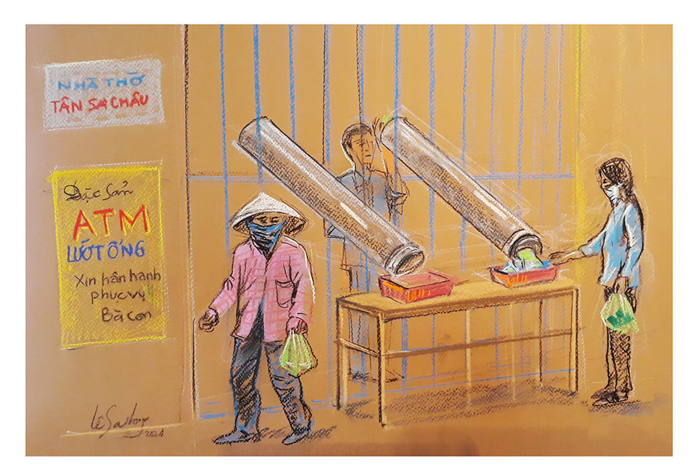 ATM lướt ống độc đáo ở nhà thờ Tân Sa Châu, phường 2, quận Tân Bình, phục vụ bà con vượt qua đại dịch.