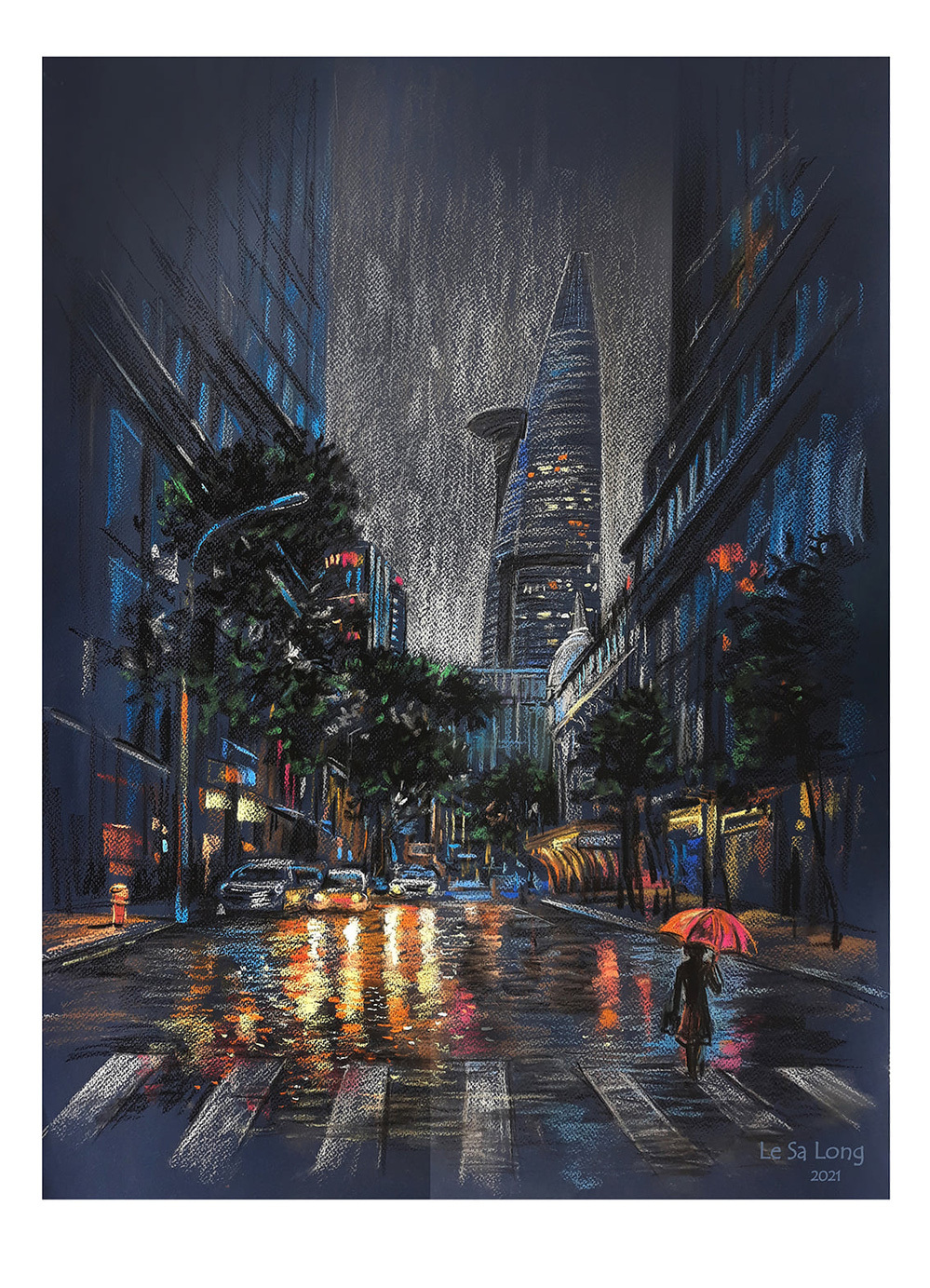 Đầu tháng 6/20219, con đường Ngô Đức Kế, quận 1, cơn mưa đêm những ngày đầu giãn cách. Khu phố vốn sầm uất, nhộn nhịp, nhiều nhà hàng, quán bar. Thế mà khi dịch tràn đến, chỉ có vài ánh đèn vàng le lói dưới cơn mưa đêm.