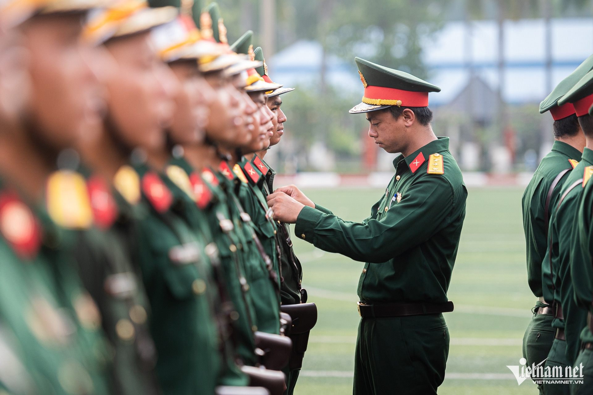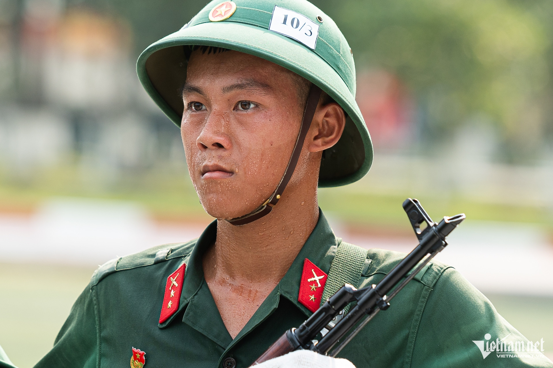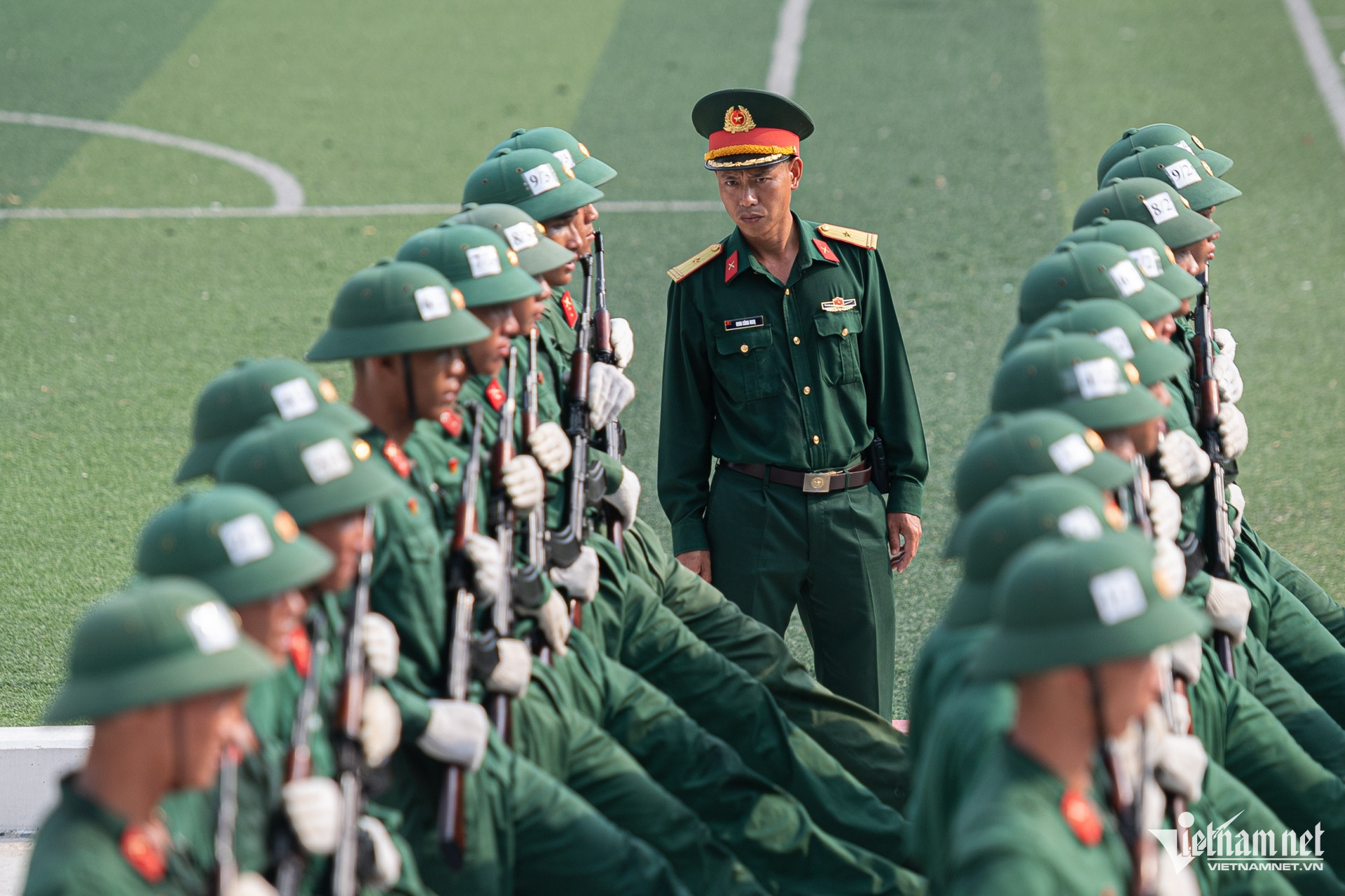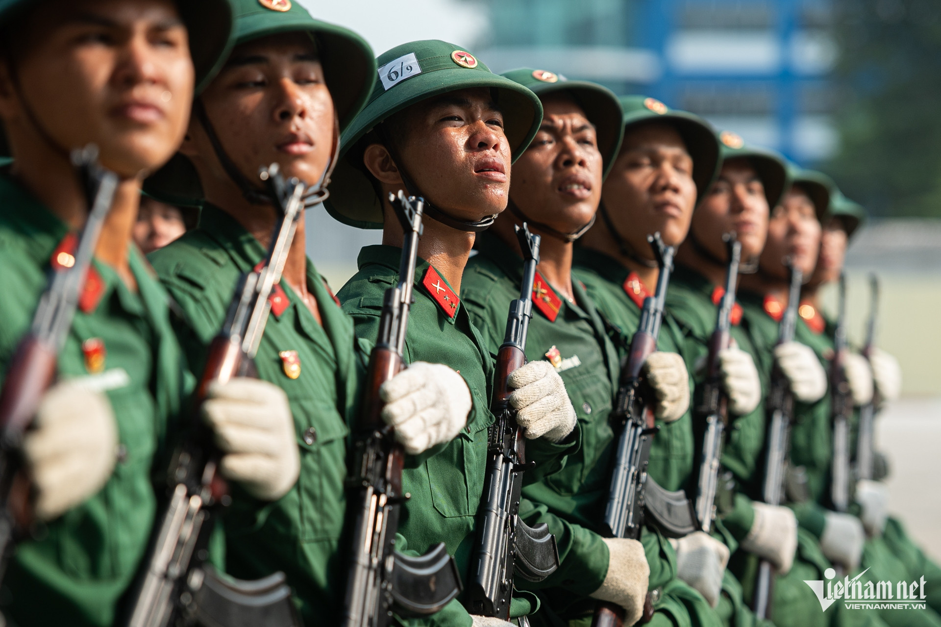 Bất chấp thời tiết nắng nóng, hàng trăm chiến sĩ Trường Quân sự Quân khu 7 (TPHCM) vẫn hăng say luyện tập các động tác sao cho đồng đều, để chuẩn bị diễu binh, diễu hành kỷ niệm 50 năm Ngày thống nhất đất nước.