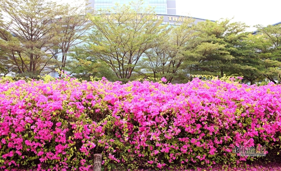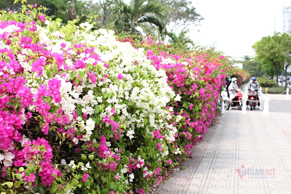 Ít năm trở lại đây, bức tường rào bằng hoa giấy phía trước trường Đại học Tôn Đức Thắng (quận 7, TP.HCM) luôn nở đẹp rực rỡ.