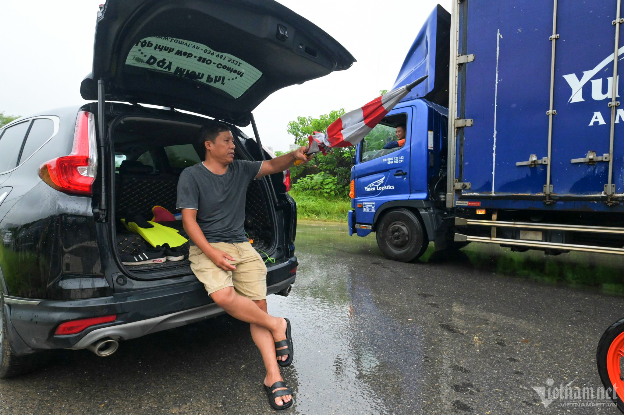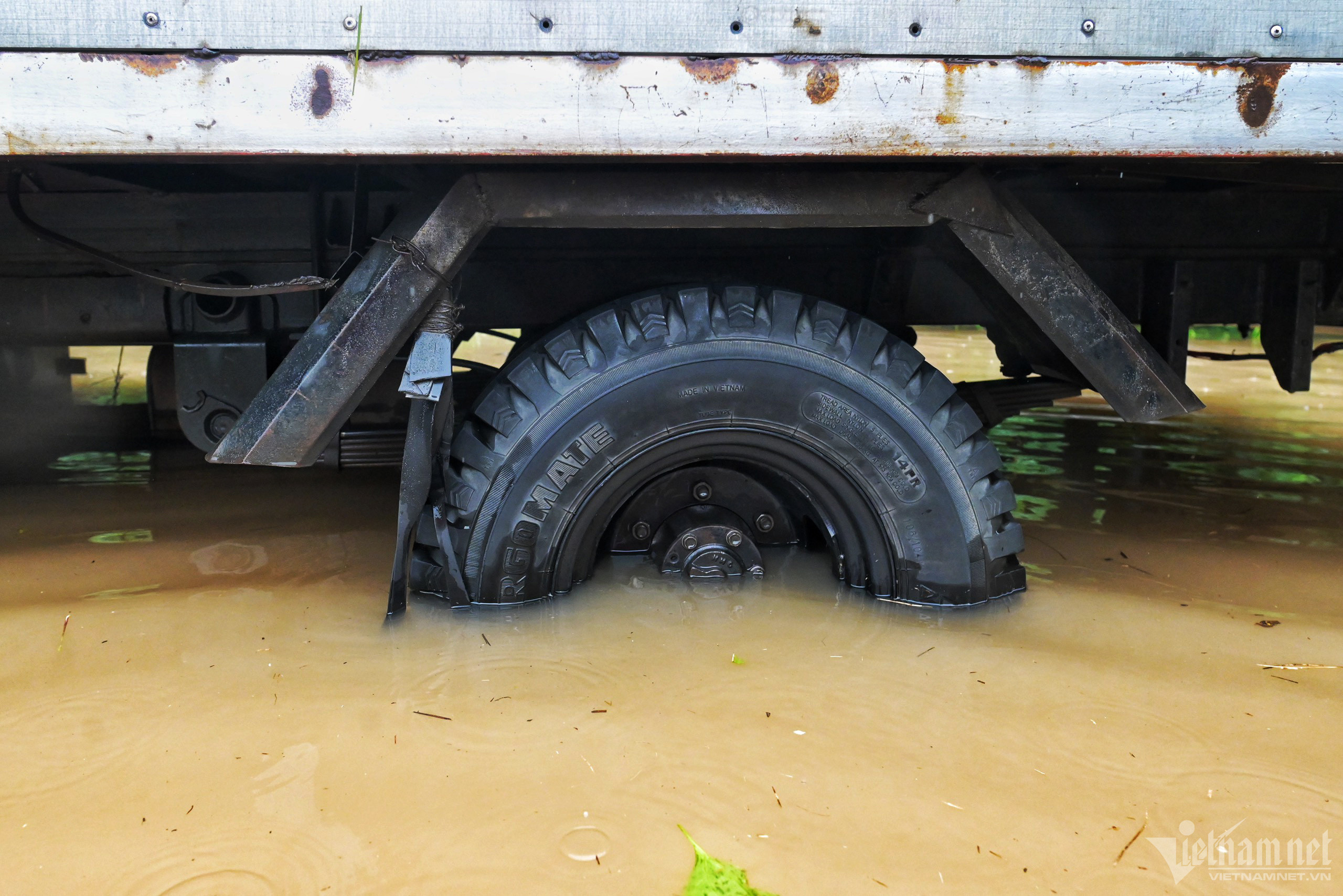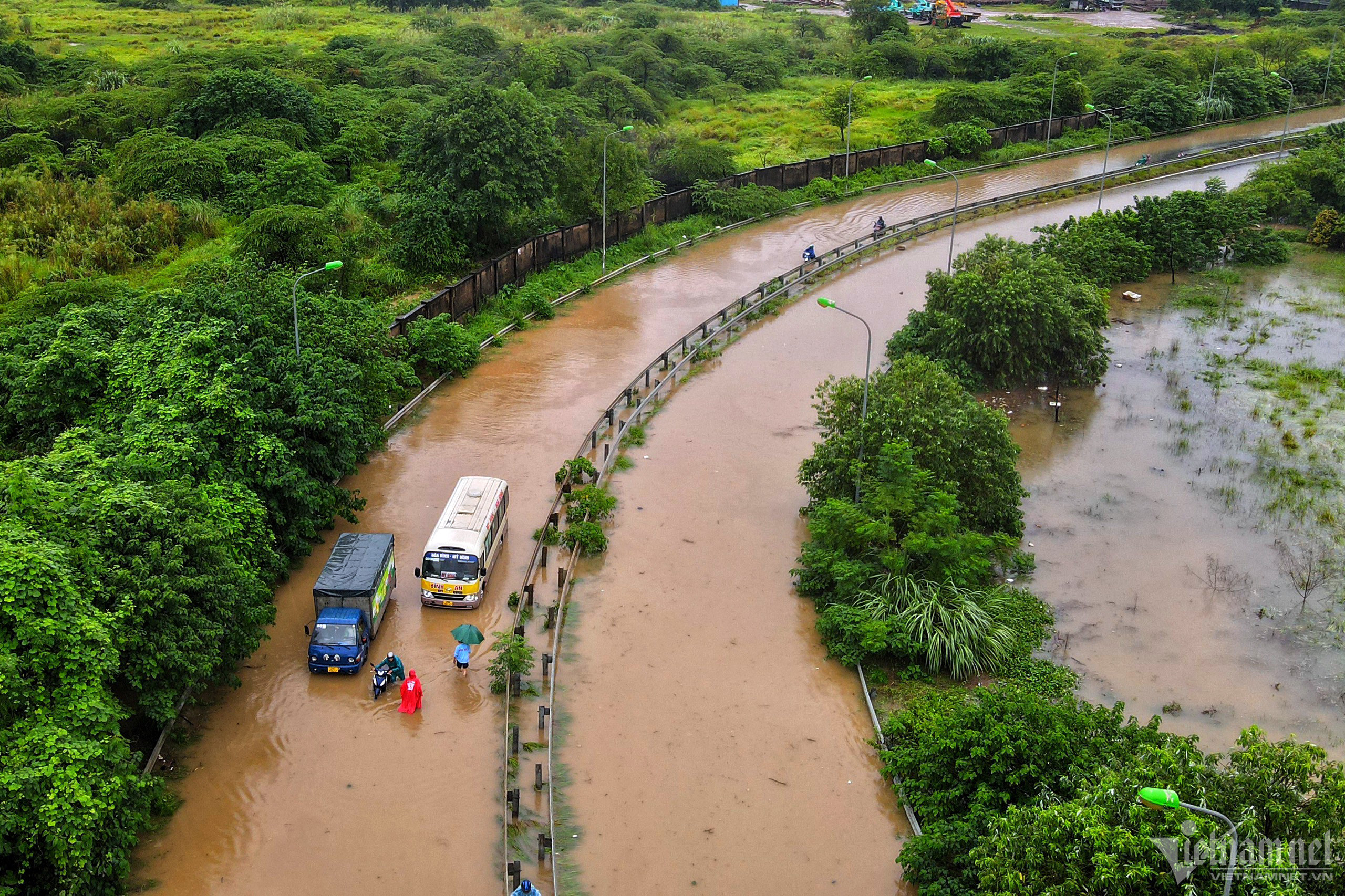 28/09/2023 22:00Buổi chiều sau mưa, đường gom đại lộ Thăng Long vẫn chìm trong biển nước