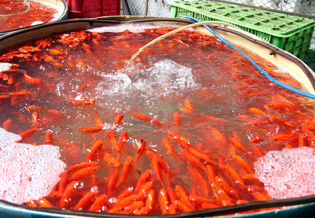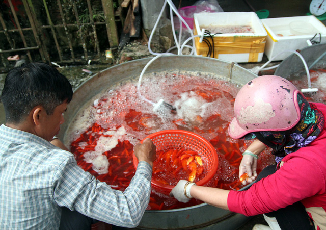 Rất nhiều tiểu thương đã và đang cung cấp số lượng cá chép đỏ phục vụ người dân tiễn Táo Quân về trời.