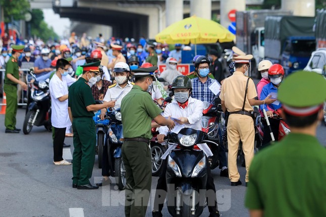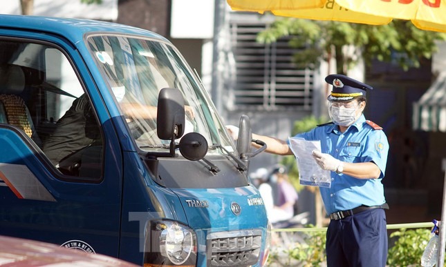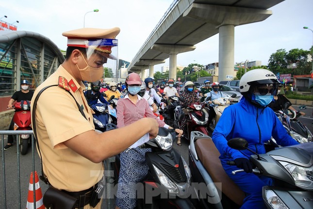 Sáng 6/9, mặc dù chưa thực hiện kiểm tra giấy đi đường mới, tuy nhiên, các phương tiện ra vào 'vùng đỏ' được kiểm soát chặt, lượng phương tiện lưu thông trên đường vẫn rất đông.