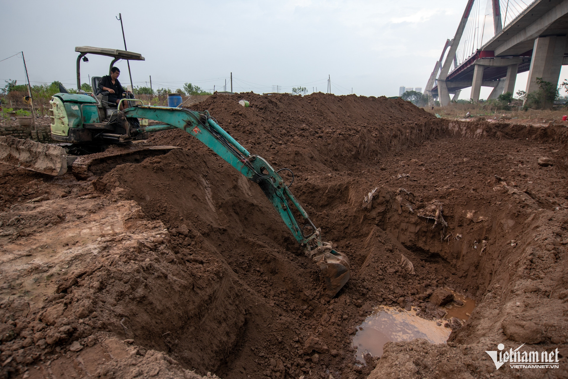 Hàng loạt chủ vườn đào tại Phú Thượng, Nhật Tân (Hà Nội) phải "đỏ mắt" tìm thuê máy xúc để cải tạo vườn sau lũ. Chi phí thuê máy xúc lên đến hơn 3 triệu đồng/ngày.