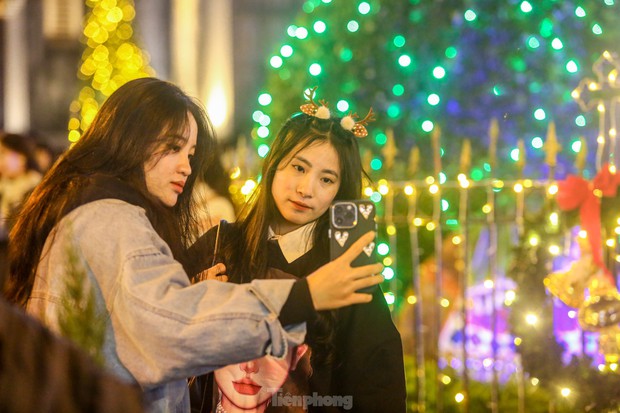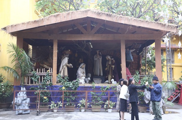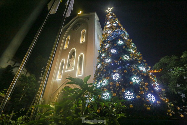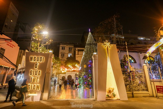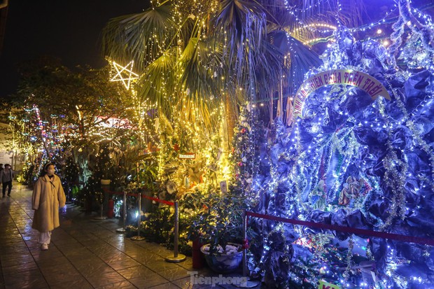 Khoảng một tuần nữa đến Giáng sinh nhưng các nhà thờ lớn ở Hà Nội được trang trí cây thông, dựng hang đá cùng nhiều đồ trang trí khác mang không khí Giáng sinh an lành, ấm áp.