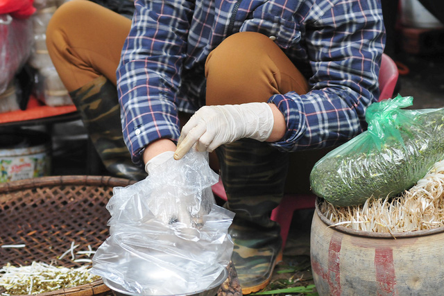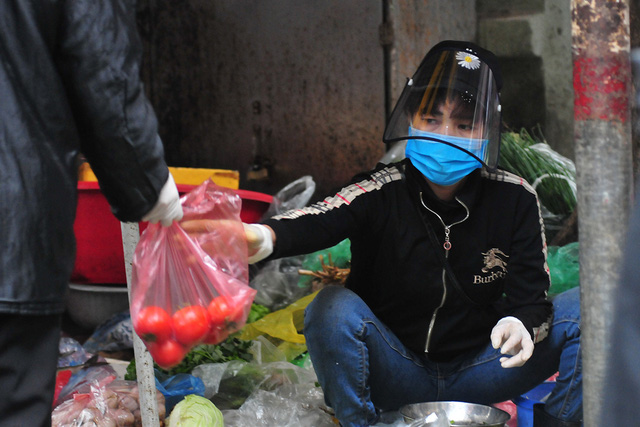 Những tiểu thương tại các khu chợ thường xuyên phải tiếp xúc với rất nhiều người. Nếu như trước đây, hình ảnh người bán hàng tại chợ dân sinh đeo khẩu trang là rất ít, đi găng tay thì càng hiếm hơn.