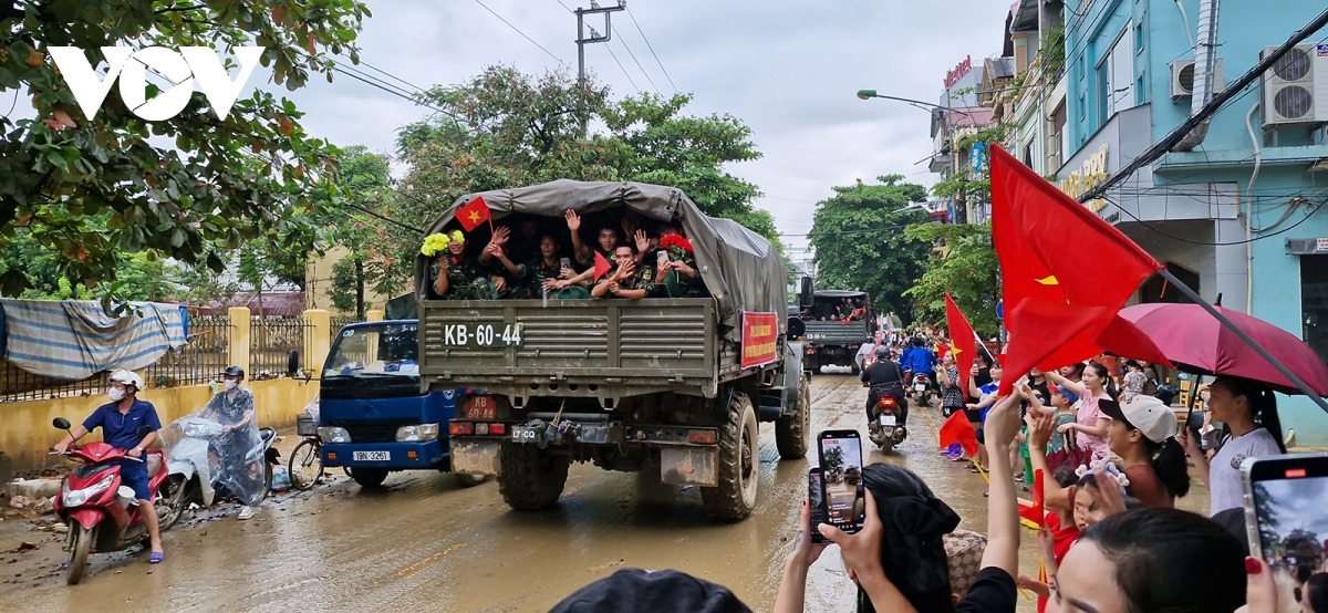 Sau hơn 10 ngày nỗ lực cùng đảng bộ, chính quyền và nhân dân thành phố Yên Bái khắc phục hậu quả cơn bão số 3, sau khi công tác khắc phục cơ bản hoàn tất, hôm nay (22/9), cán bộ, chiến sĩ các đơn vị đã lên đường trở về đơn vị. Hàng nghìn người dân địa phương đã đứng dọc hai bên đường đoàn đi qua để gửi lời cảm ơn, bịn rịn chào tạm biệt.