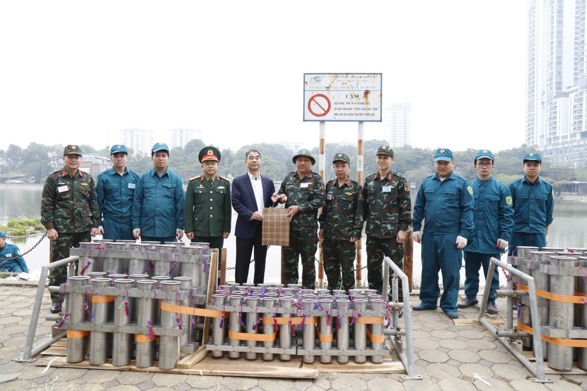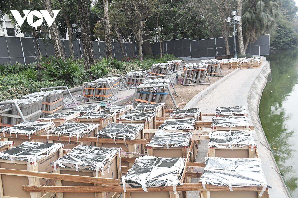 Tất cả các trận địa pháo hoa tầm cao tại Thủ đô Hà Nội đã được lắp đặt hoàn thành và sẵn sàng khai hỏa để chào mừng năm mới 2025.