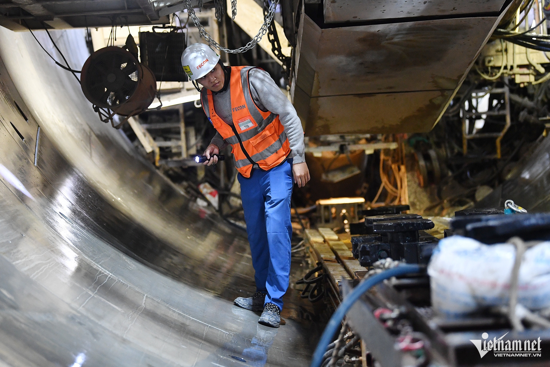 Máy TBM1 có tên “Thần tốc” xuất phát từ ga S9 (Kim Mã) của tuyến metro Nhổn - ga Hà Nội đã khoan được 647m hầm ở độ sâu 17,8m.