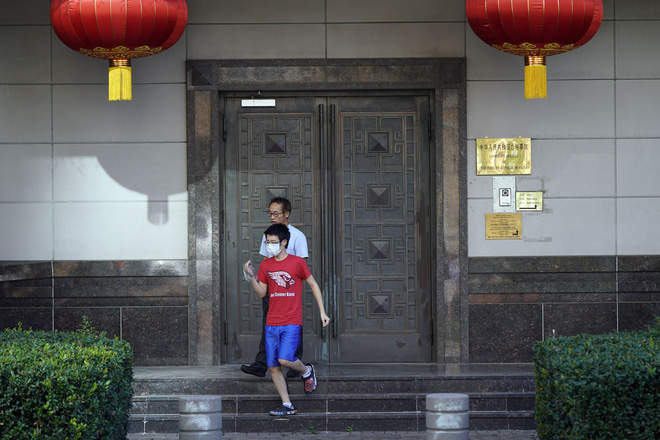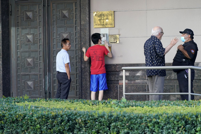 23/07/2020 23:15Cận cảnh bên ngoài LSQ TQ, nhiều du khách ấn chuông muốn vào nhưng không được