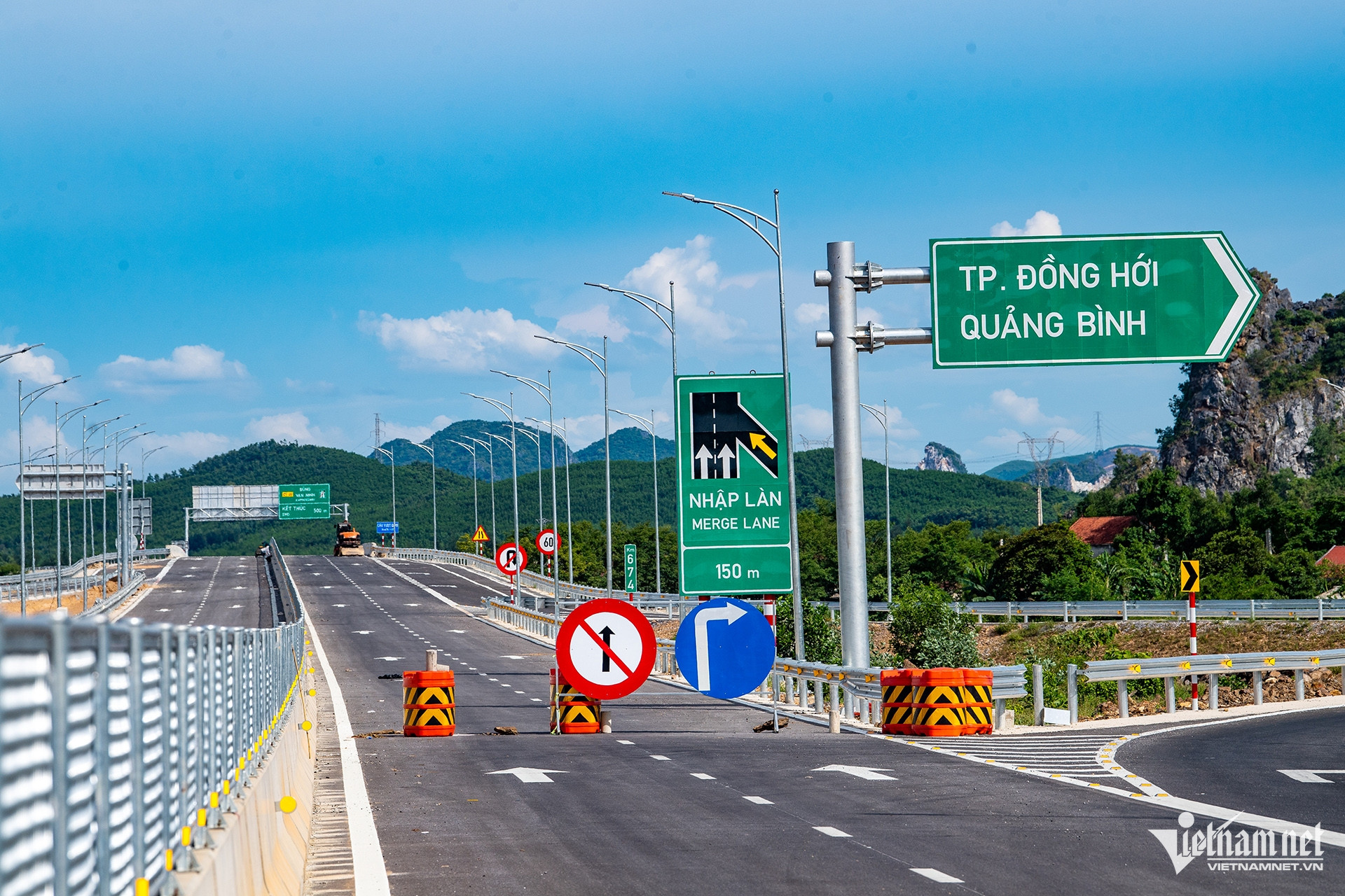 Một số đoạn của cao tốc Vạn Ninh - Cam Lộ đã cho phép phương tiện chạy nhưng khi đến khu vực có chốt chặn công trường phải đi sang hướng đường Hồ Chí Minh để tiếp tục lưu thông.