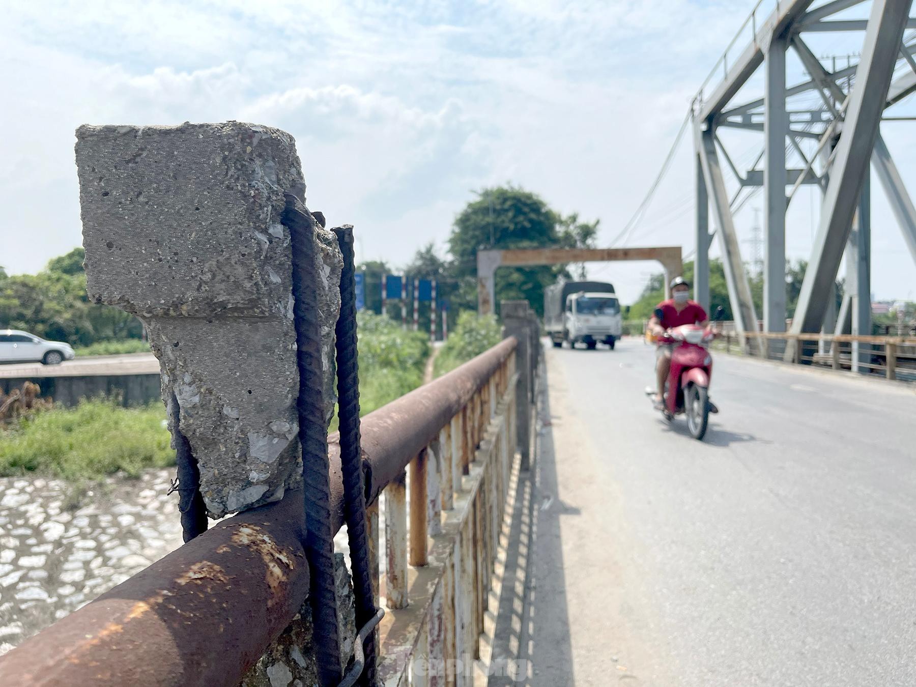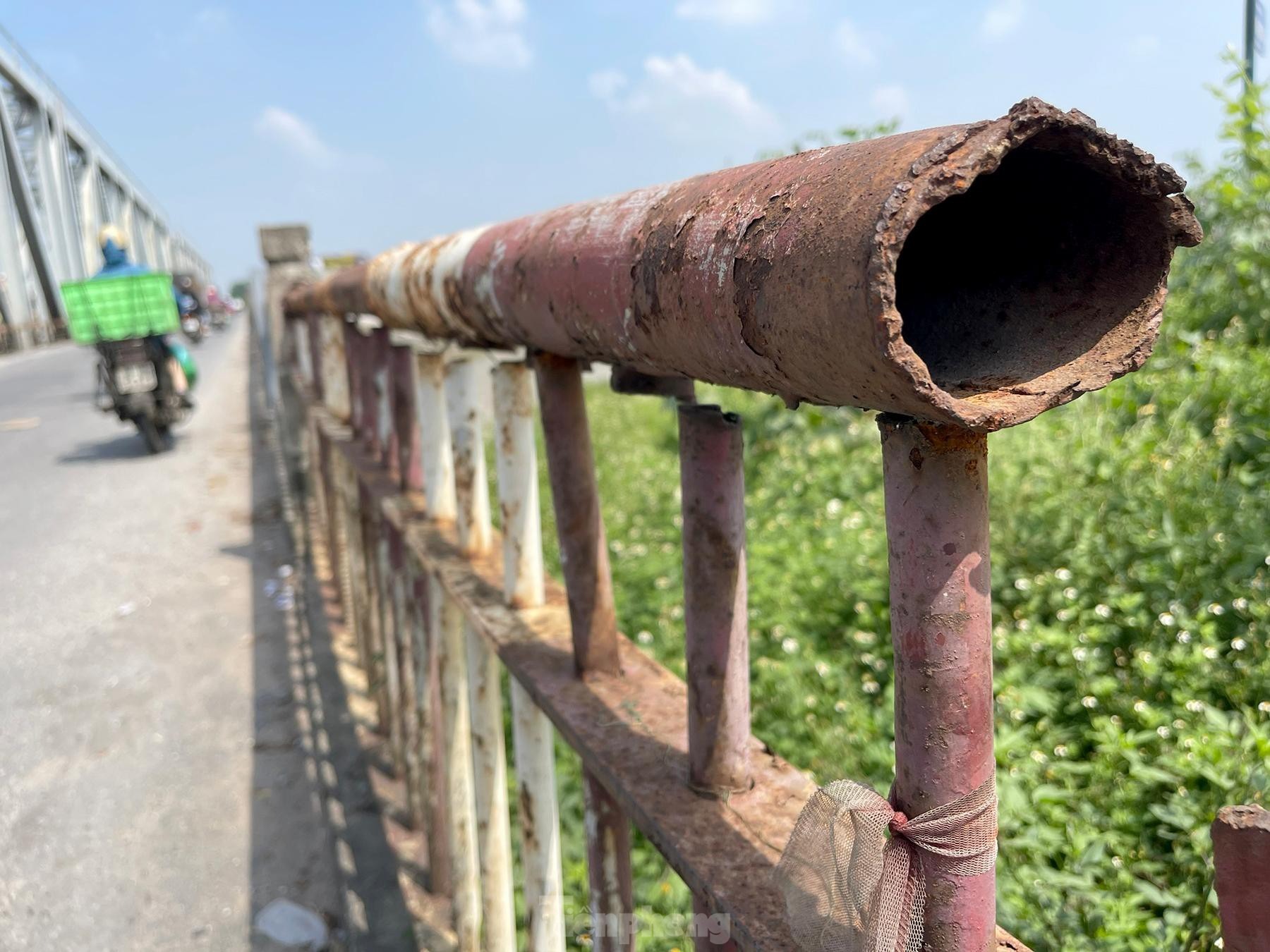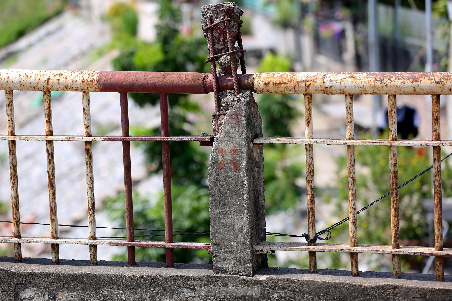 Thành cầu trơ trụi cọc sắt.