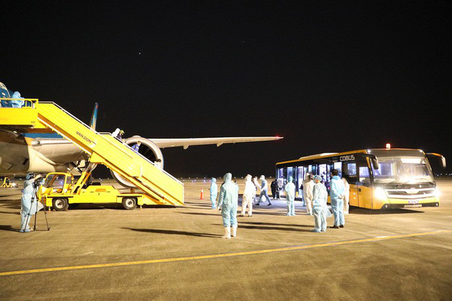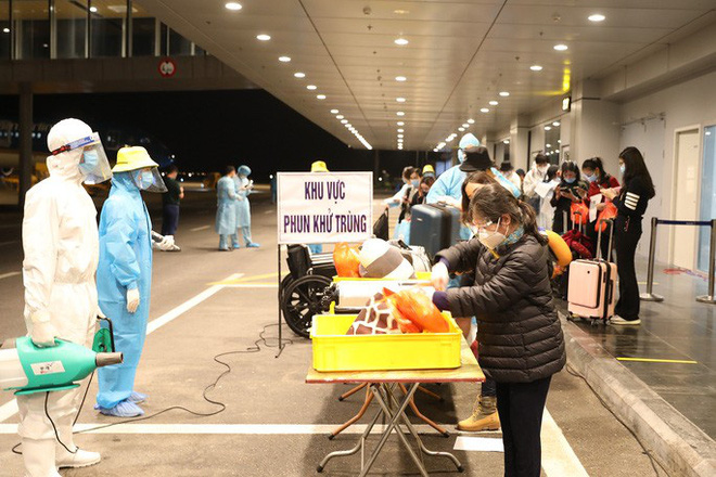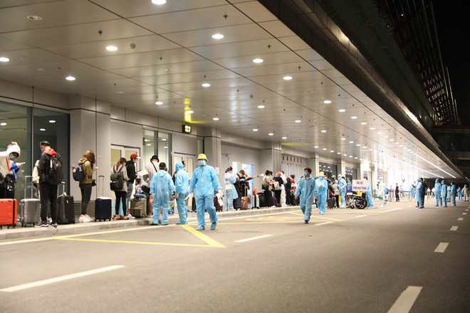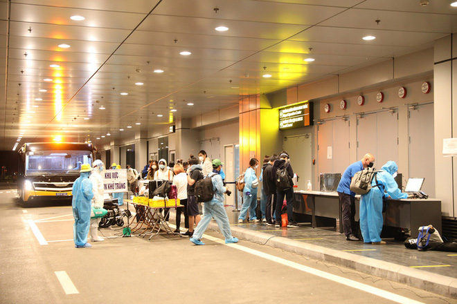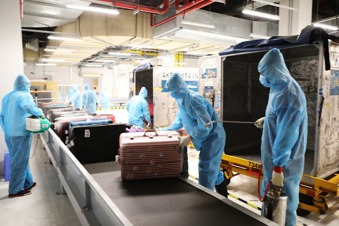 Sau đó, hành khách được đưa về khu vực cách ly, theo dõi sức khỏe trong 14 ngày theo quy định. Khu vực nhà ga, luồng di chuyển của hành khách được khử trùng, khử khuẩn sau khi hoàn tất đón chuyến bay. Quy trình này đảm bảo hạn chế tối đa nguy cơ lây nhiễm chéo dịch bệnh giữa hành khách với nhau và với nhân viên sân bay.