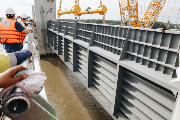 24/08/2020 14:22Cận cảnh cống ngăn triều lớn nhất Việt Nam của dự án chống ngập 10.000 tỷ đồng ở Sài Gòn vừa được lắp cửa van 460 tấn