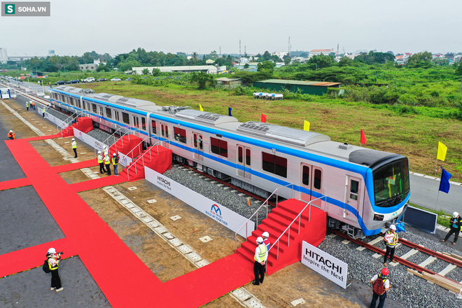 Sáng 13/10, TP.HCM tổ chức buổi lễ đón đoàn tàu metro đầu tiên (thuộc tuyến metro số 1, Bến Thành - Suối Tiên) về nước.