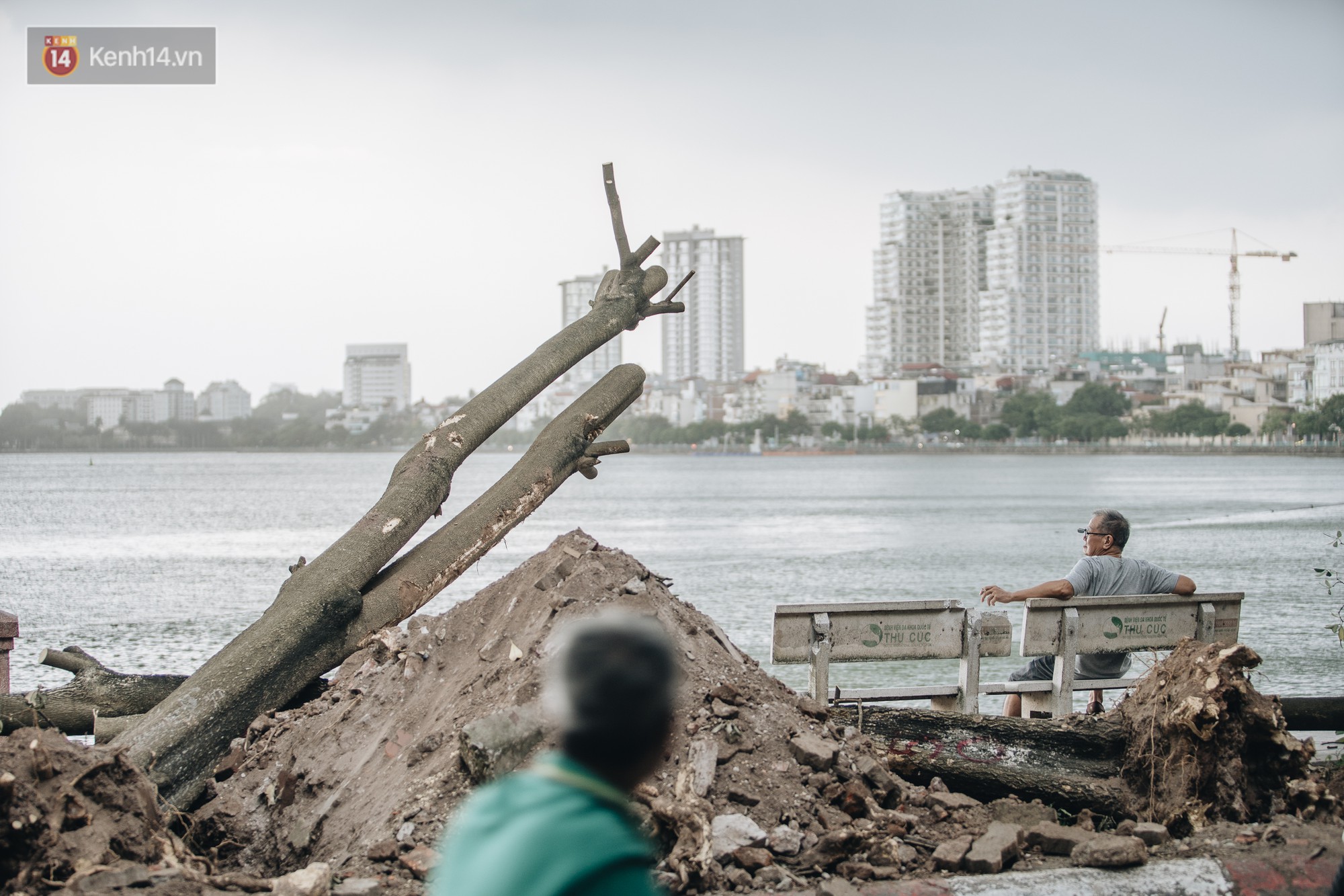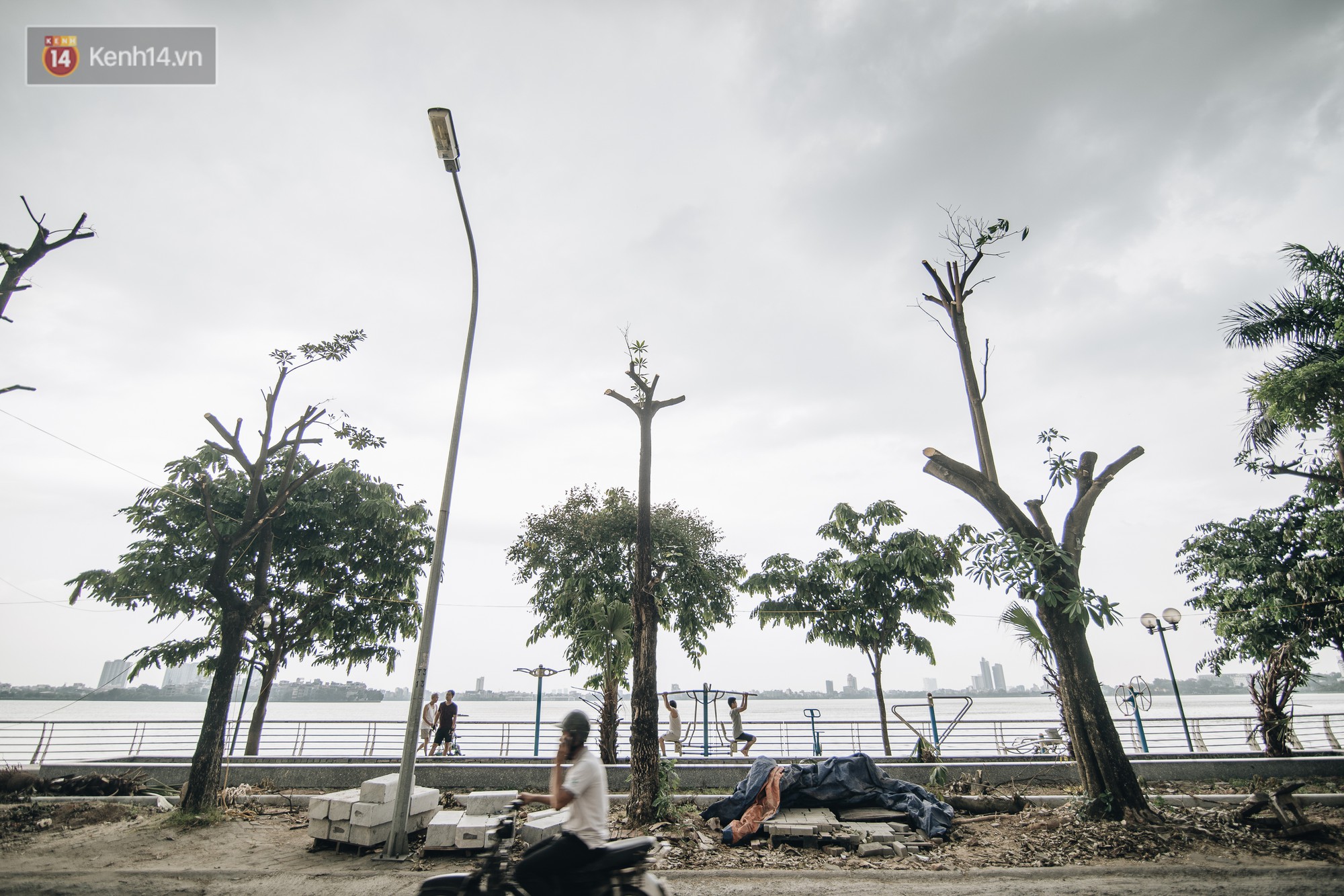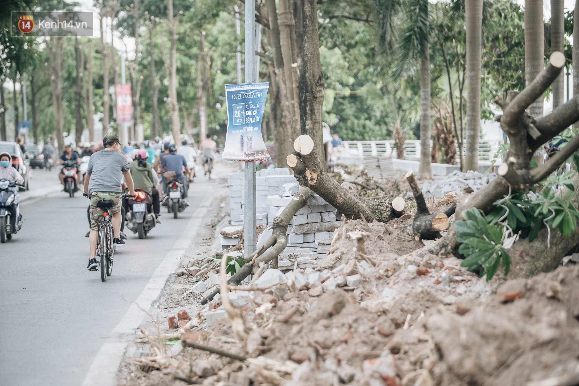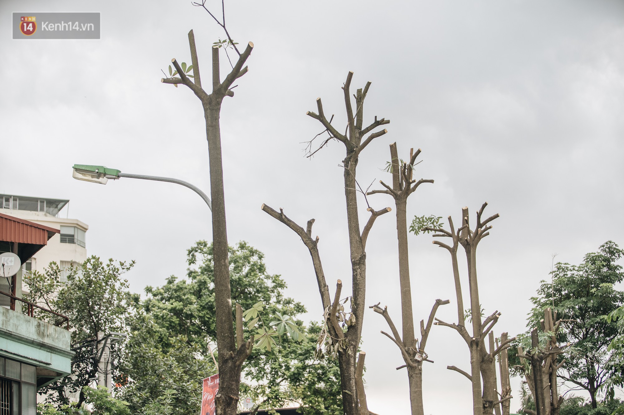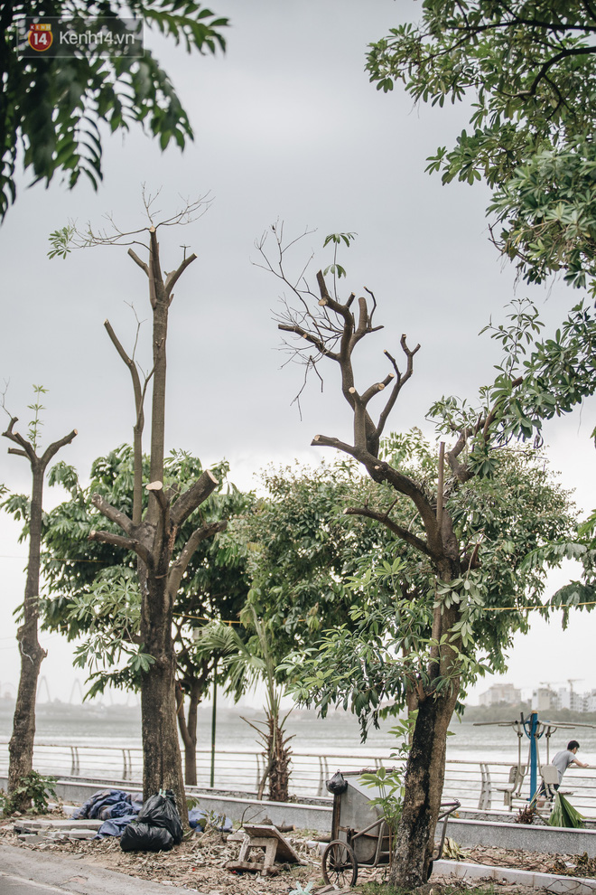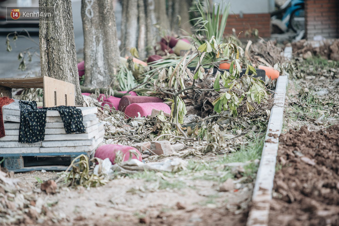 Những gốc cây, cành lá nằm vất vưởng trên lề đường, mặt phố. Theo nhiều người dân quanh khu vực, cảnh tượng này khá nhếch nhác và mong muốn được chính quyền nhanh chóng xử lý.