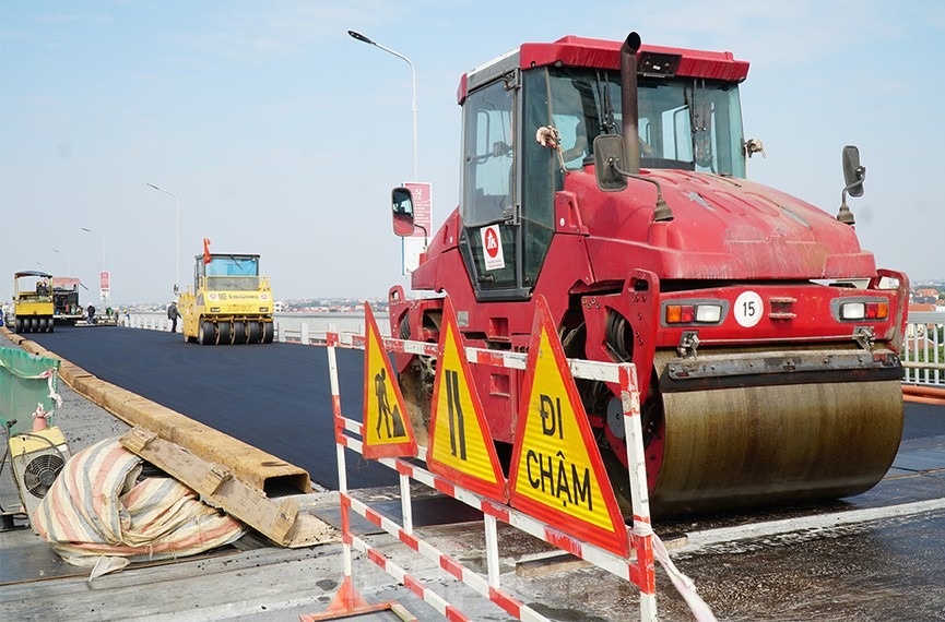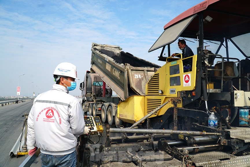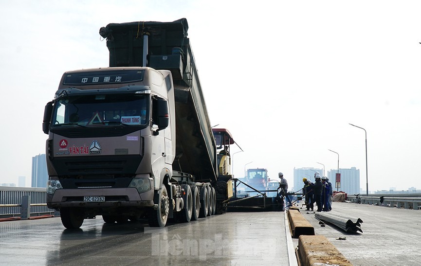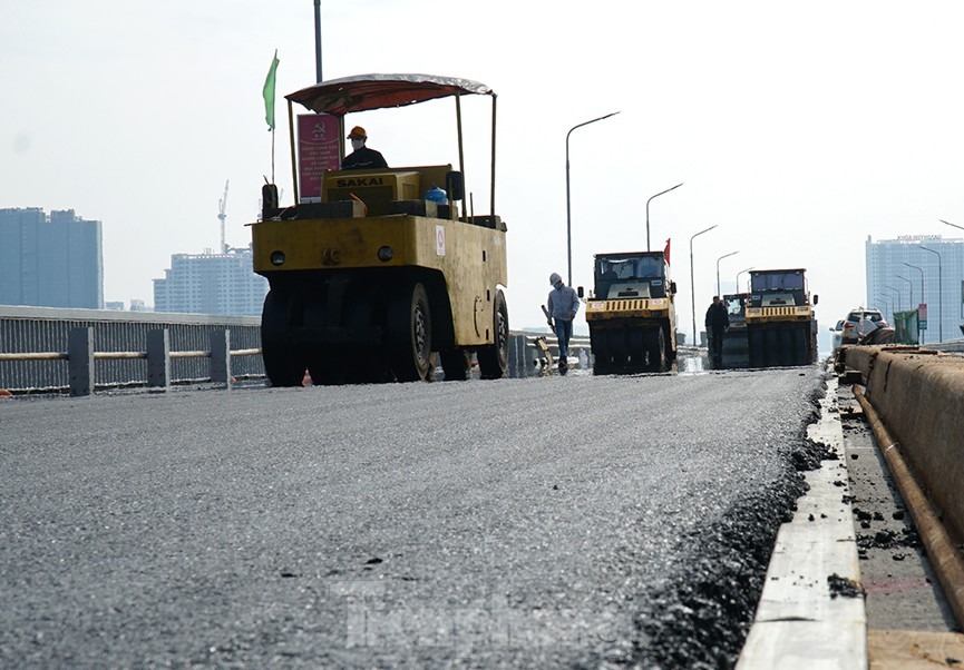 Sau 6 tháng tiến hành sửa chữa mặt cầu Thăng Long (Hà Nội), các đơn vị thi công đang gấp rút hoàn thành những hạng mục cuối cùng để chuẩn bị thông xe vào đầu năm 2021.