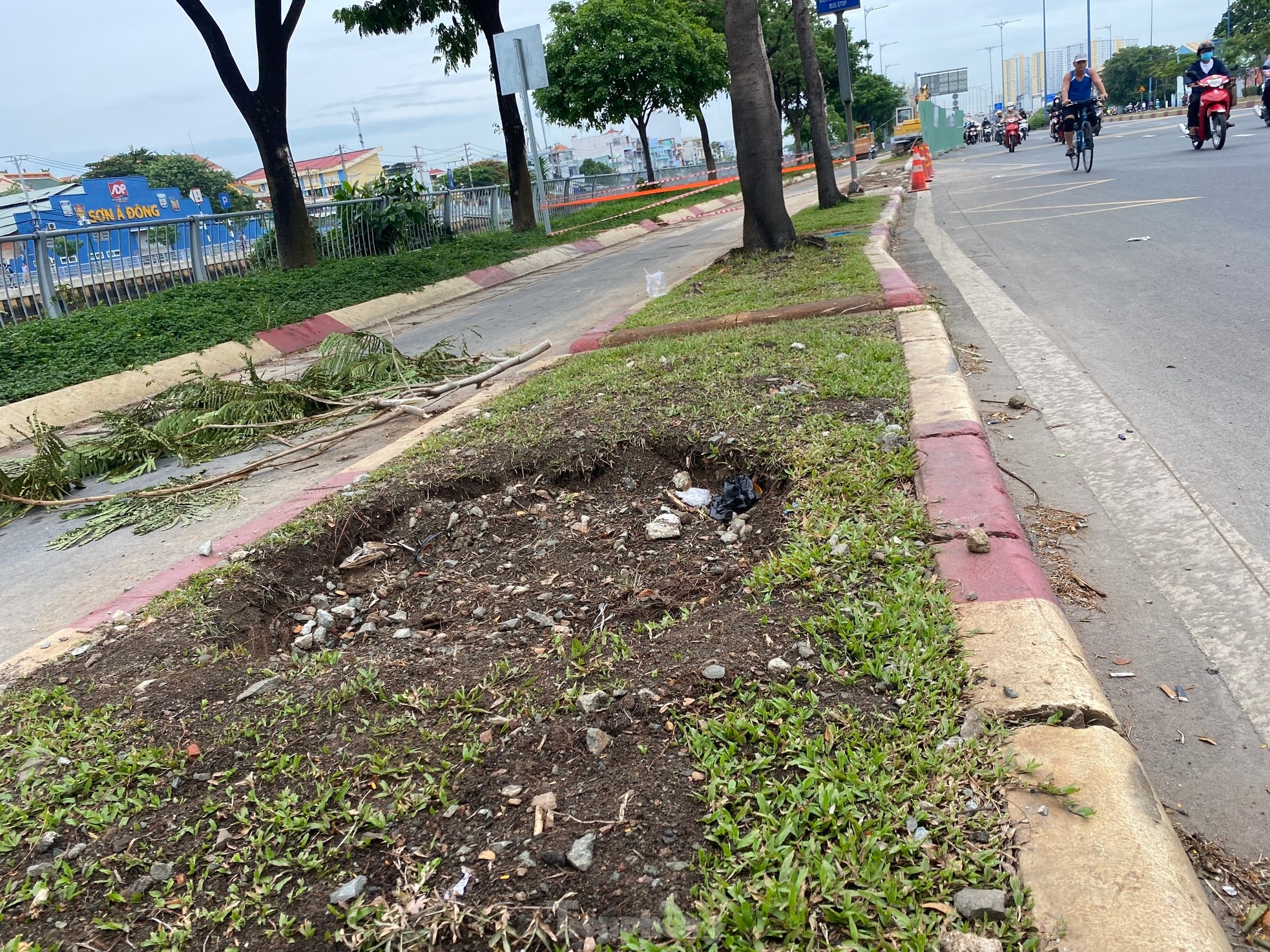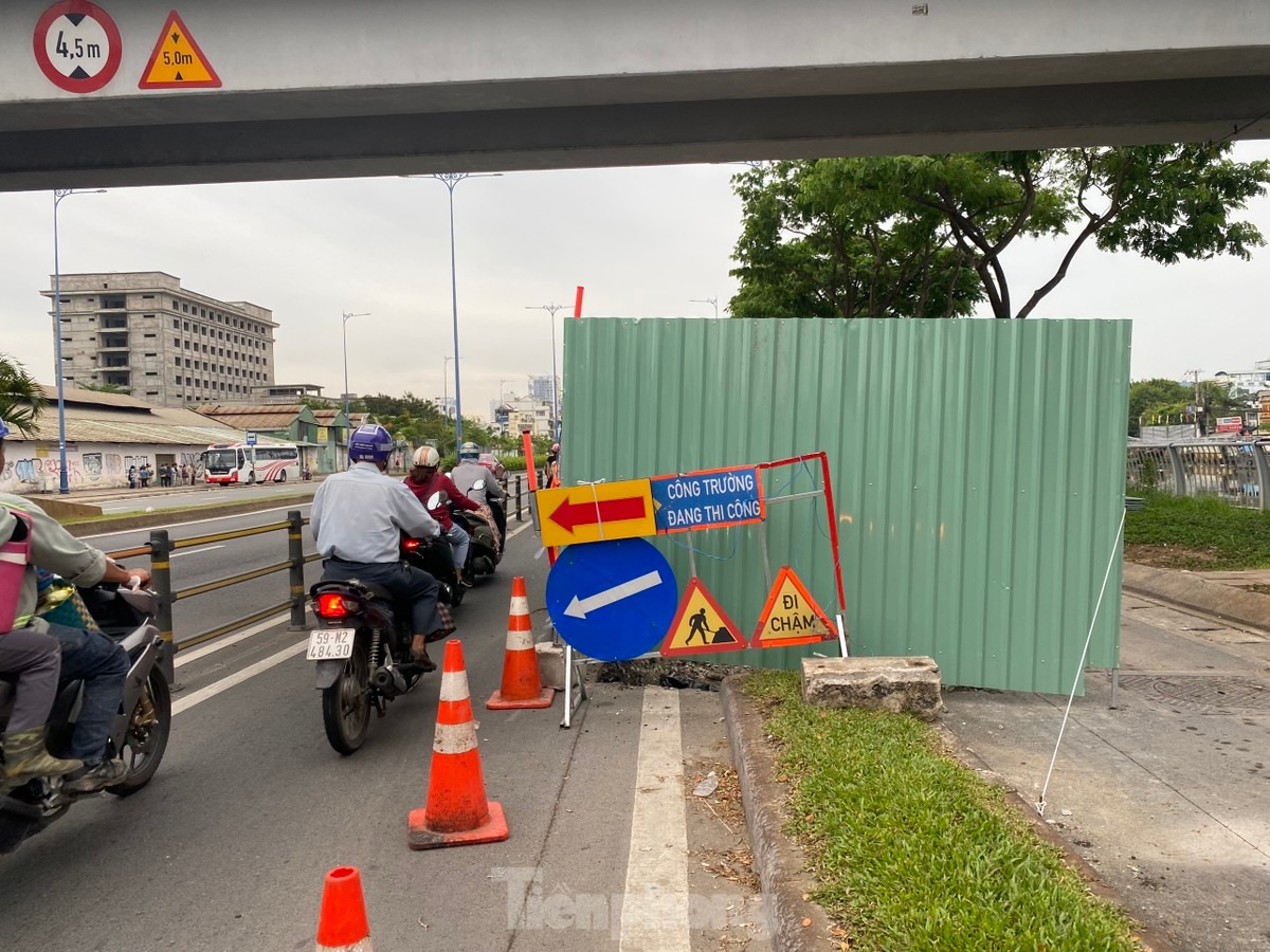 Dải phân cách cứng (bồn cỏ, có trồng cây xanh) giữa hai làn xe máy đường Võ Văn Kiệt (theo hướng từ nút giao Tân Kiên, huyện Bình Chánh đi hầm sông Sài Gòn, quận 1) đang được tháo dỡ để mở rộng bề rộng mặt đường lên khoảng 7m.
