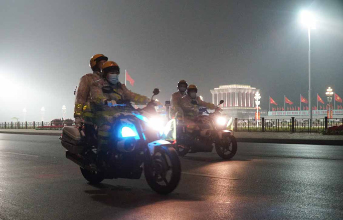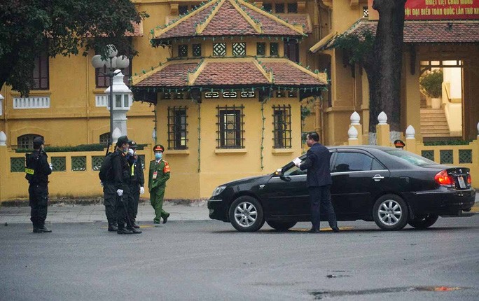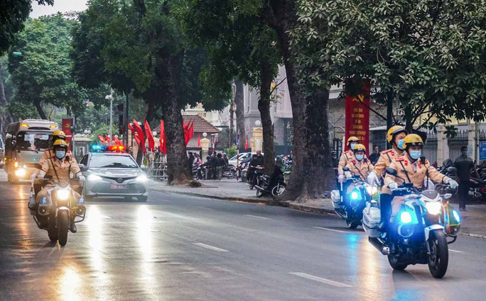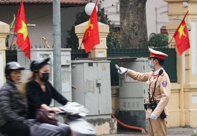 Hàng ngàn chiến sĩ công an, quân đội có mặt trên các tuyến đường TP Hà Nội nhằm đảm bảo giao thông cho đoàn xe đưa các đại biểu đến Lăng viếng Chủ tịch Hồ Chí Minh, sau đó tới Trung tâm Hội nghị Quốc gia dự phiên họp trù bị Đại hội XIII của Đảng.