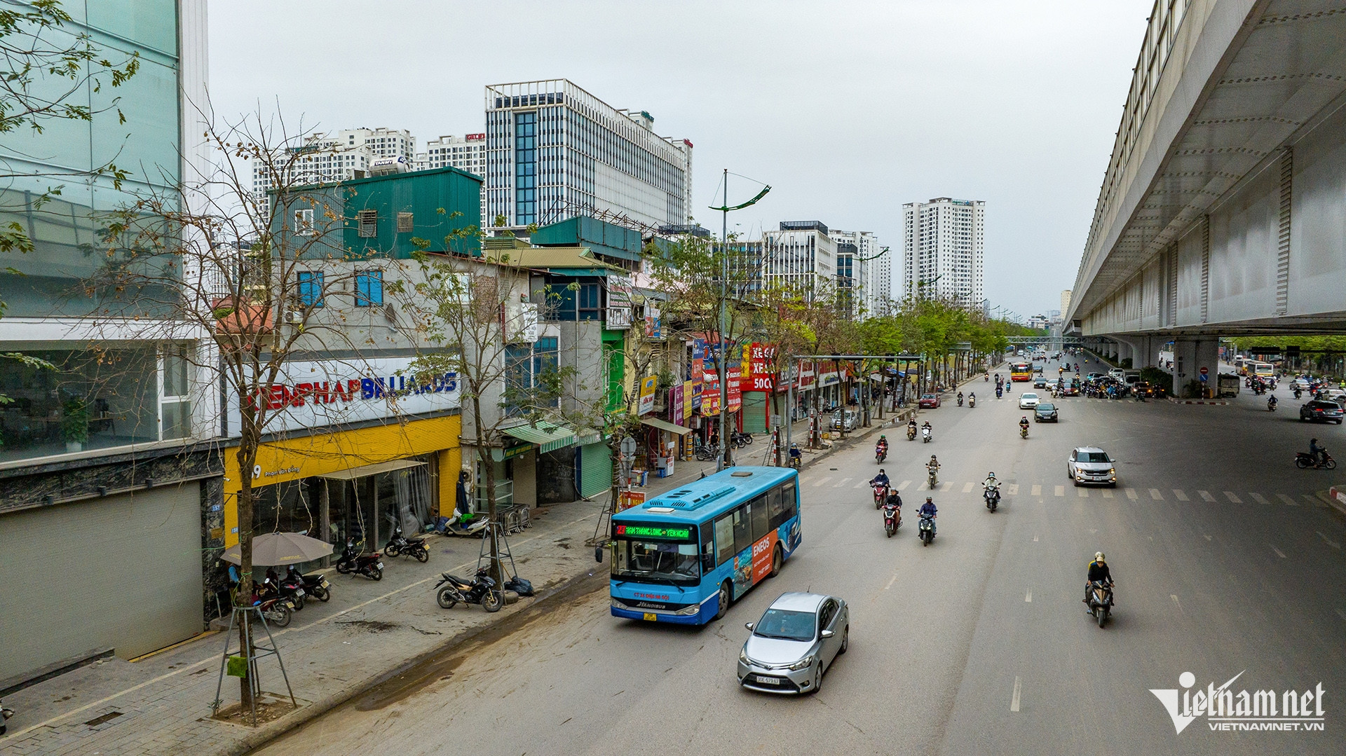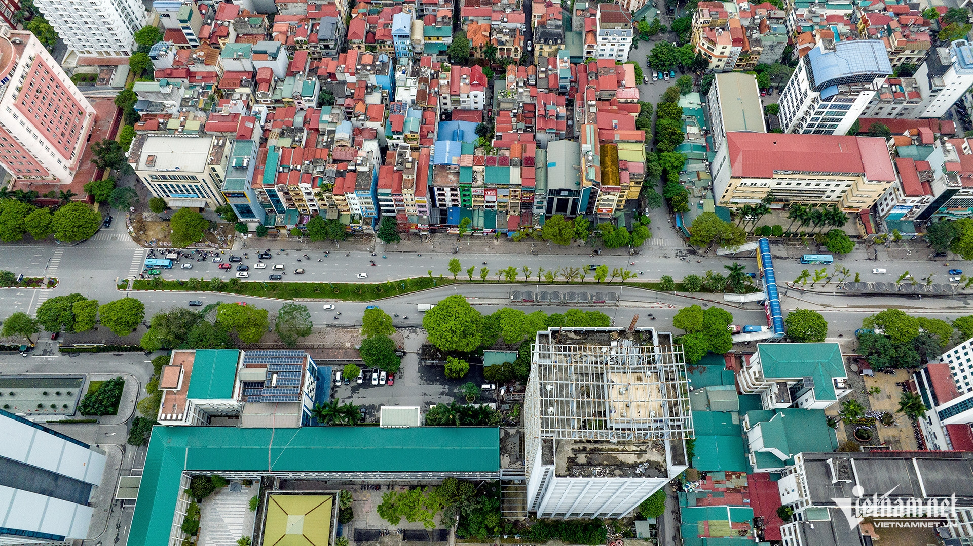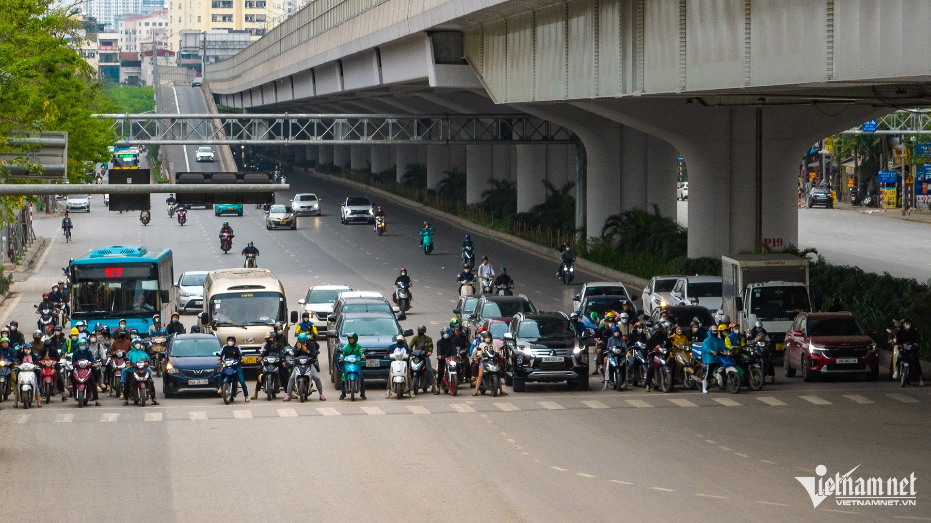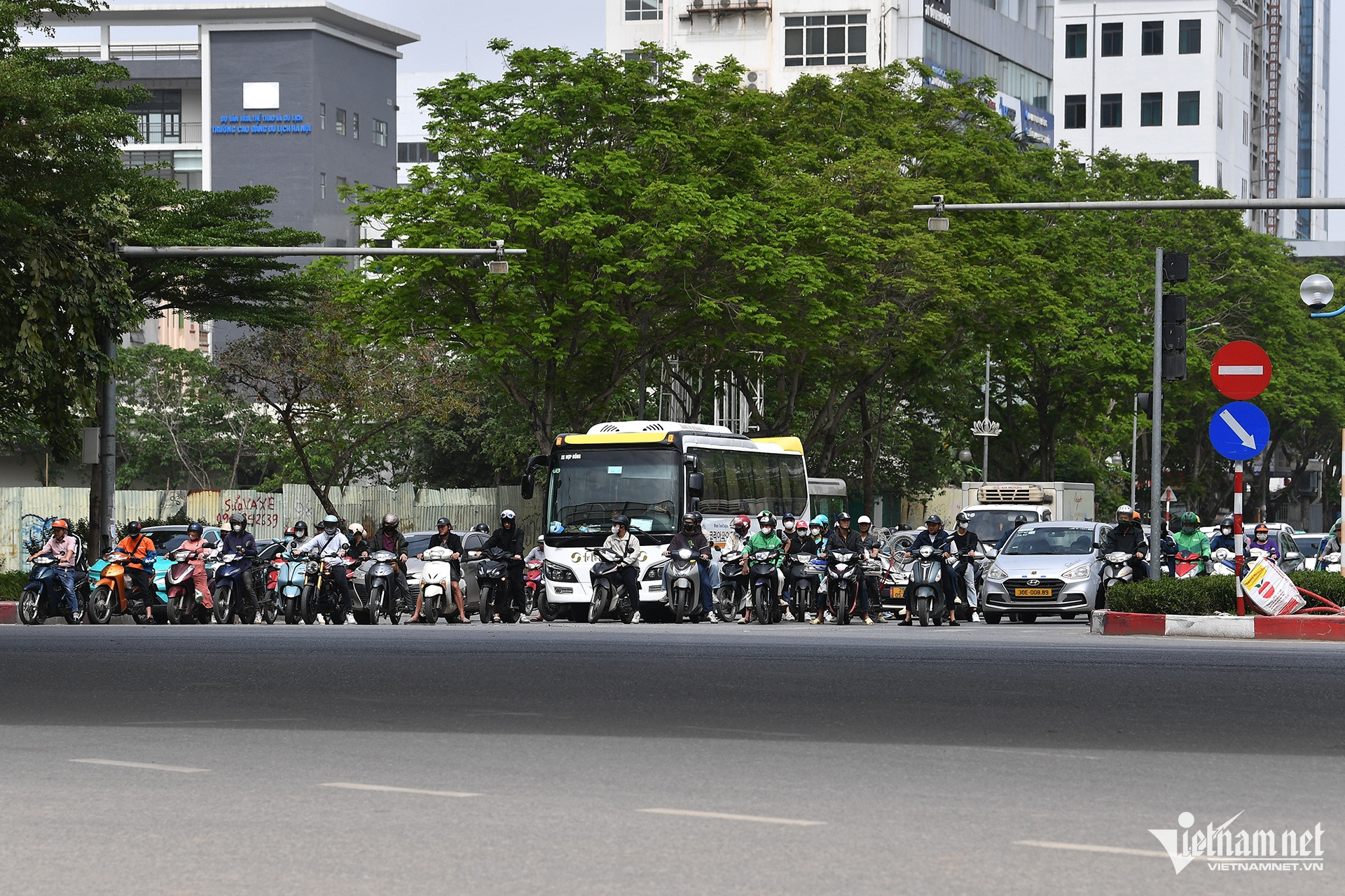 Ngoài ra, đường Hoàng Quốc Việt hiện trạng (trong ảnh) sẽ được xén hè, điều chỉnh dải phân cách giữa, mở rộng làn đường bên phải và bên trái các đường xung quanh nút giao.