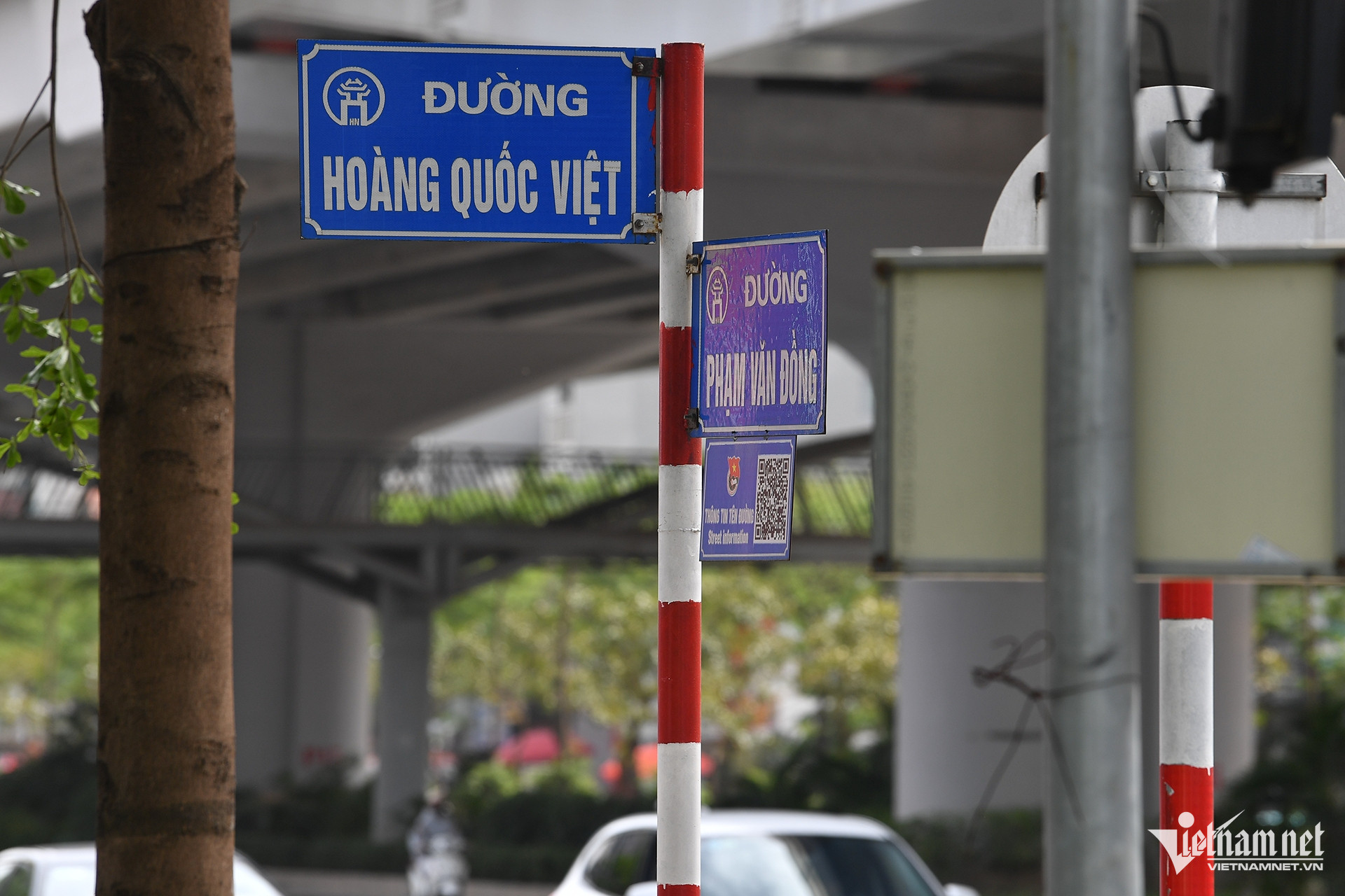 Đường hai bên trước khu vực cổng Bộ Công an rộng 14,75m gồm 4 làn xe cơ giới, hè đường rộng 4,5m, đầu tư xây dựng mới đường Hoàng Quốc Việt kéo dài với quy mô cắt ngang 50m theo quy hoạch.