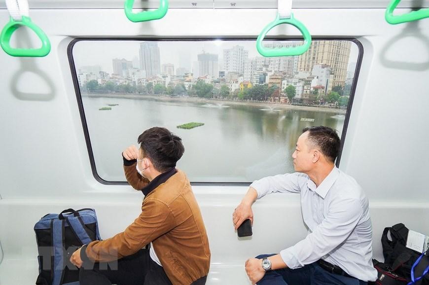 Giá vé đi tàu được tính theo quãng đường di chuyển của hành khách, trong đó tối đa 15.000 đồng/lượt nếu đi toàn tuyến và thấp nhất là 8.000 đồng với quãng ngắn nhất. (Ảnh: Hoàng Hiếu/TTXVN)