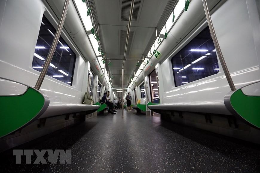 Nội thất phía trong đoàn tàu Cát Linh-Hà Đông. (Ảnh: Huy Hùng/TTXVN)